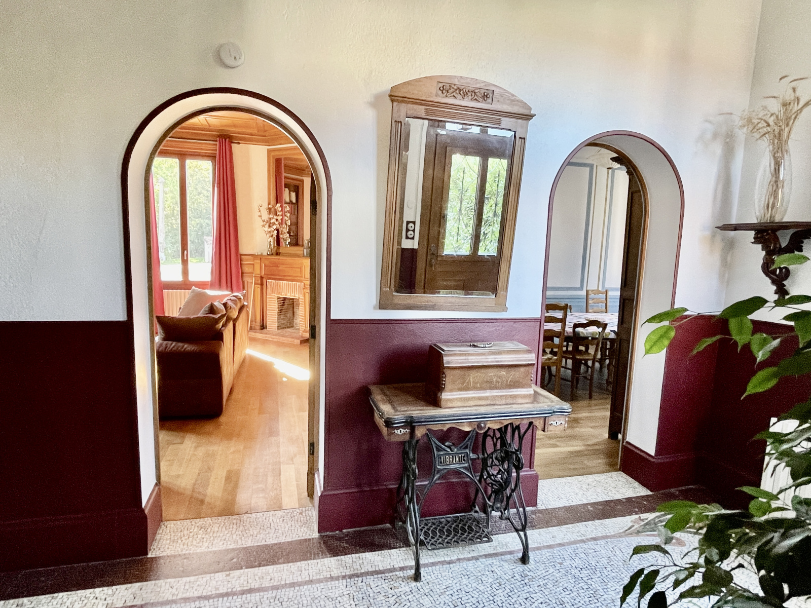 Entièrement rénovée avec des matériaux de qualité au cours de ces 4 dernières années et ayant conservé tous les éléments caractéristiques de l'ancien( cheminées, carreaux de ciment, parquet, boiserie, hauteur sous plafond, escalier en bois..) d'une surface habitable de 200 m², cette superbe demeure lumineuse est agencée comme suit:au rdc; un hall d’entrée dessert une vaste salle à manger, un très beau salon avec cheminée, un bureau, une cuisine aménagée et équipée d’un magnifique piano GODIN, une arrière-cuisine, un vestibule, une salle d'eau avec toilettes. Un majestueux escalier en bois permet d’accéder aux étages supérieures offrant 4 vastes chambres, une salle de bains avec baignoire et douche, une pièce d’eau avec toilettes et des toilettes séparées. Un grenier offre la possibilité d'aménager une chambre supplémentaire et une salle de bains additionnelle. Climatisation réversible dans les chambres.