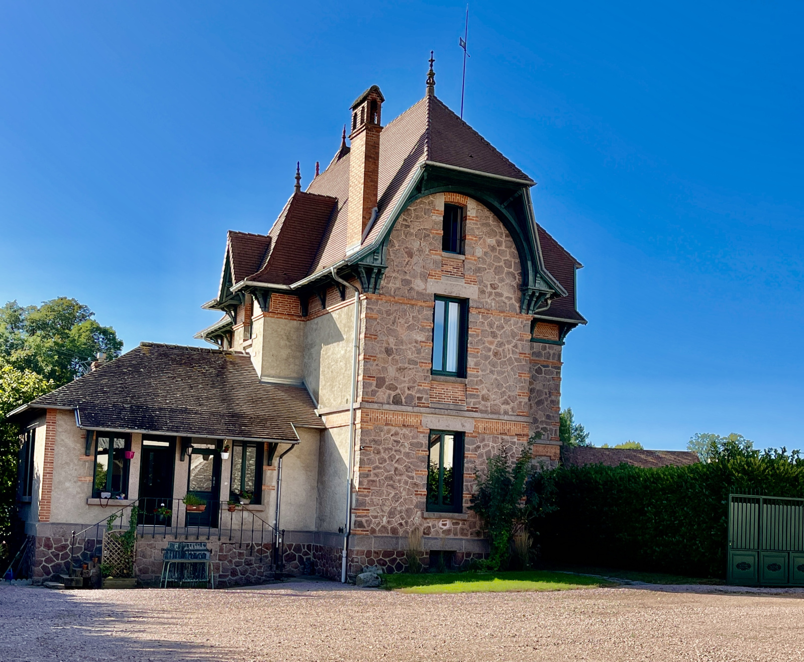 Le Donjon (03130)Entre Vichy et Paray-le-Monial, à 1H45 de LYON, au coeur d’un charmant village, élégante demeure bourgeoise de style Deauville datant de 1908; entièrement réhabilitée, avec grand préau sur un ensemble clos de 1000 m2.