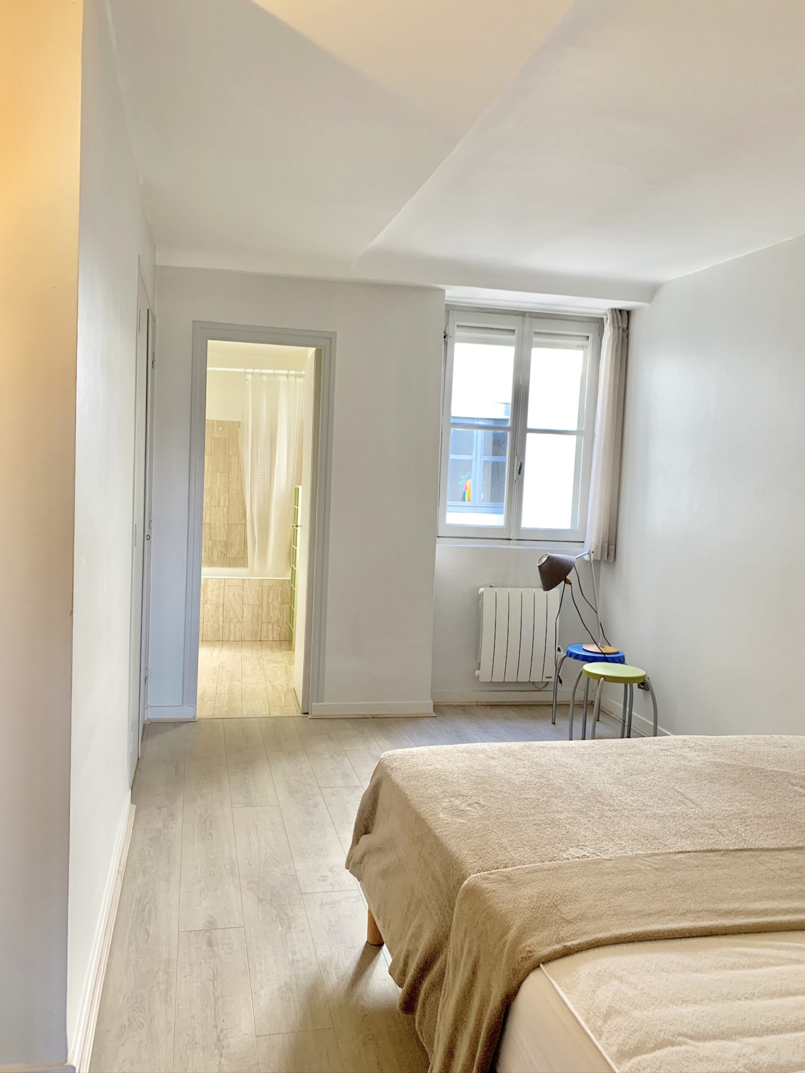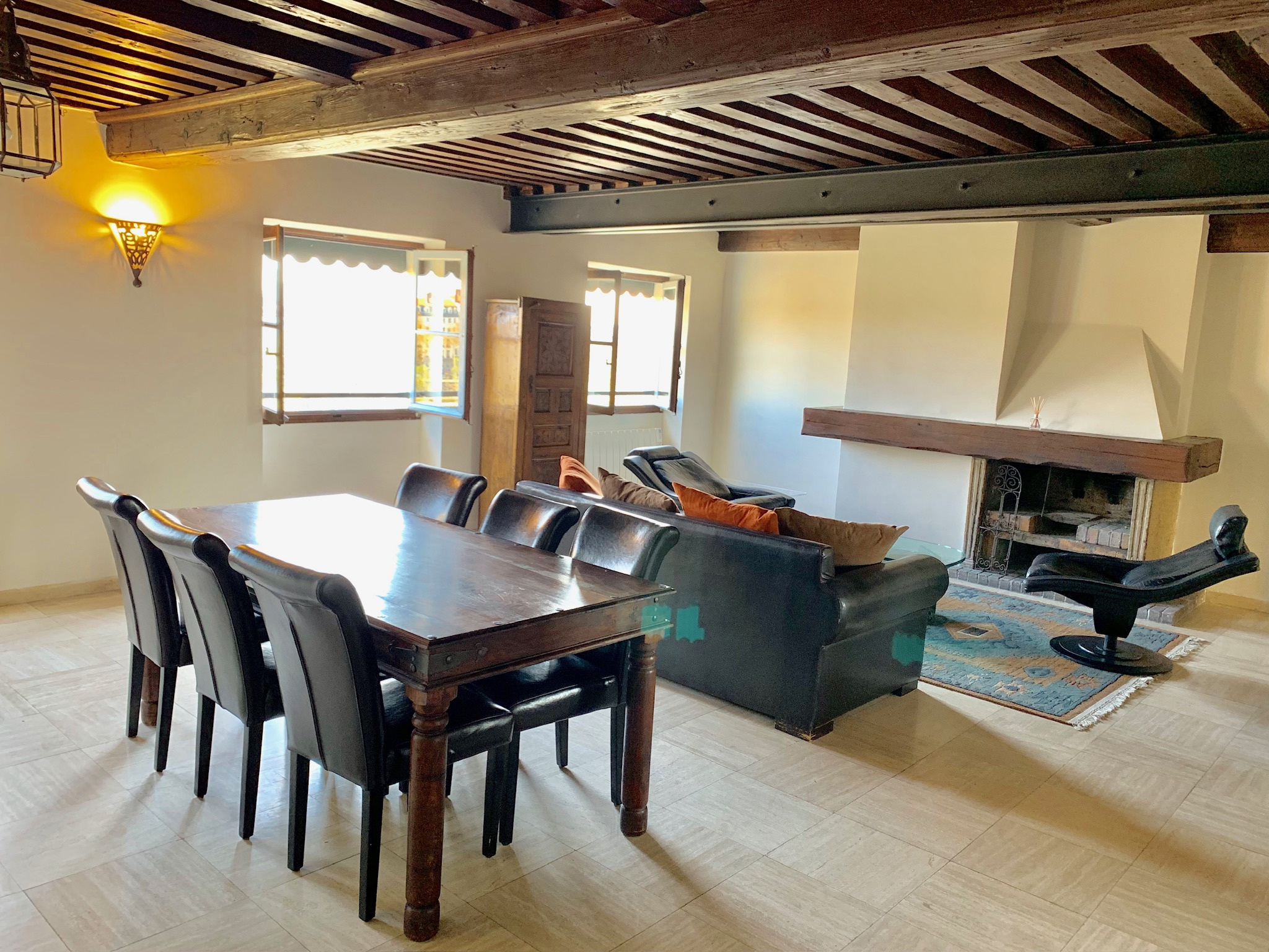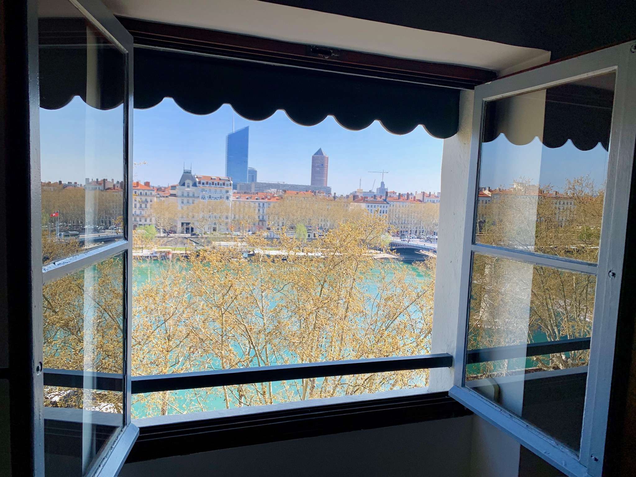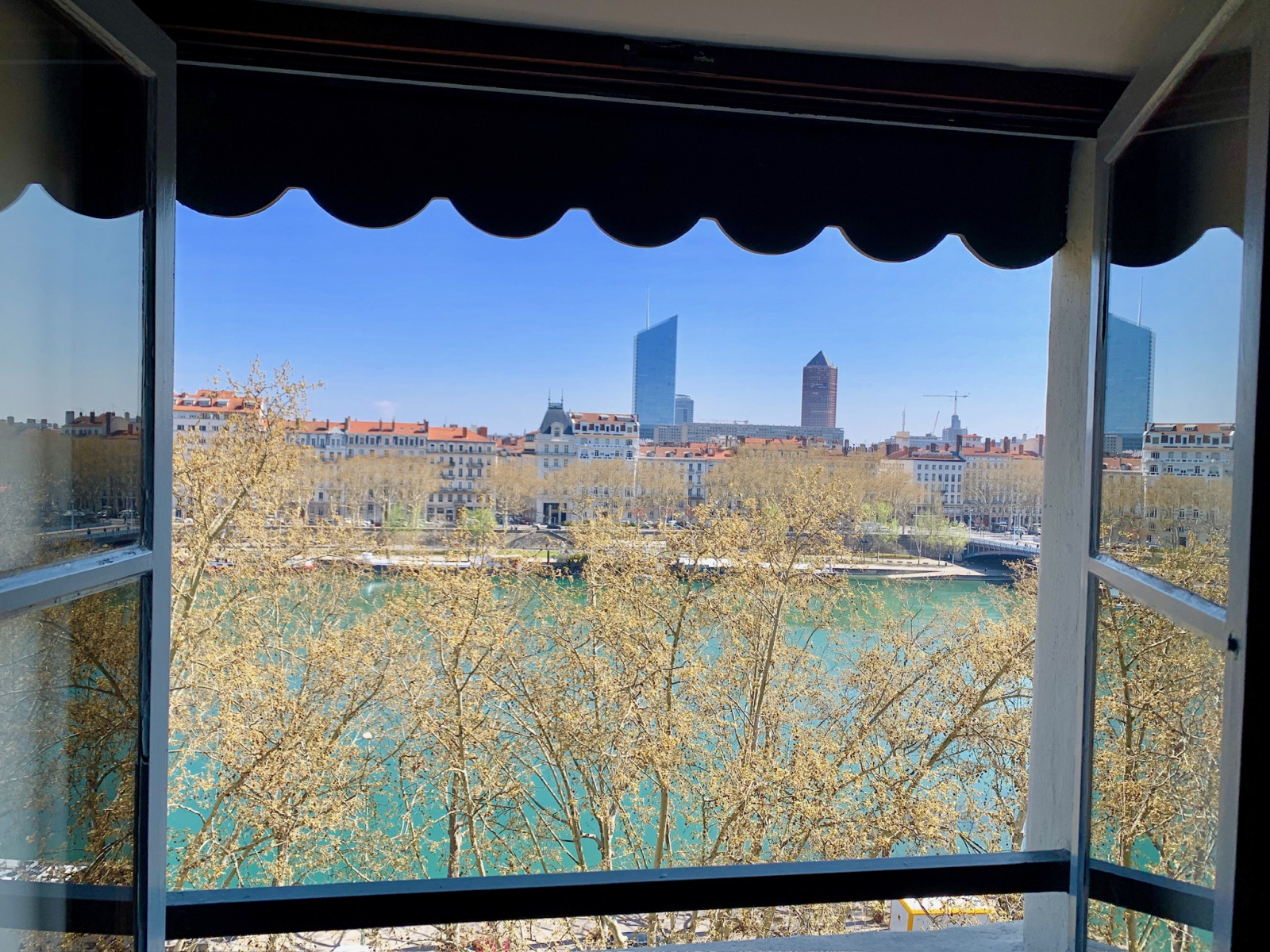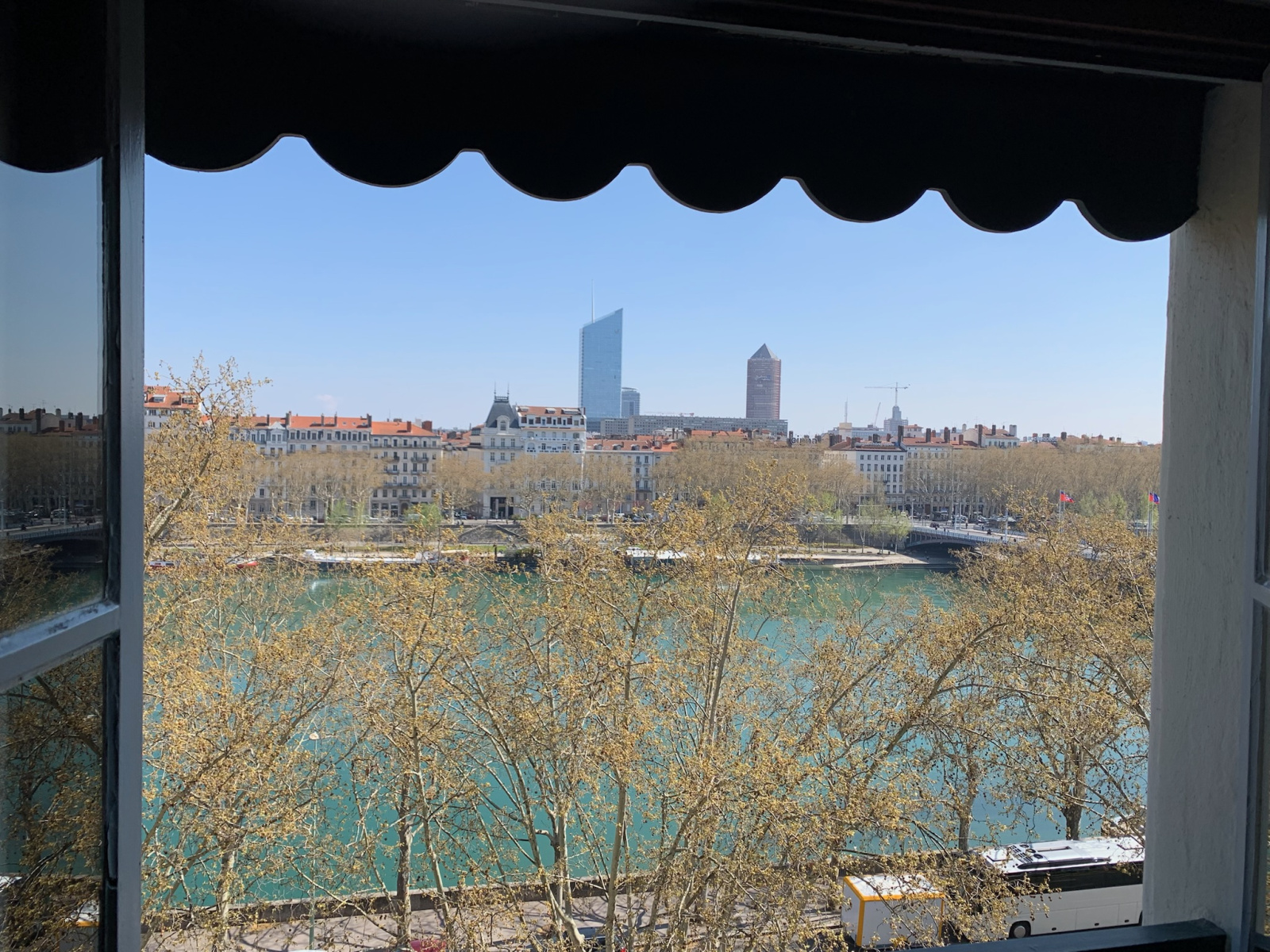 Lyon (69002)Exclusivité-proche métro CORDELIERS et commerces, en étage élevé avec vue imprenable sur LYON, appartement de charme meublé de 76 m², très lumineux et ainsi agencé : hall d'entrée qui dessert une cuisine indépendante équipée, vaste séjour avec cheminée et plafond à la française , 1 chambre avec salle de bains attenante et toilettes indépendantes.