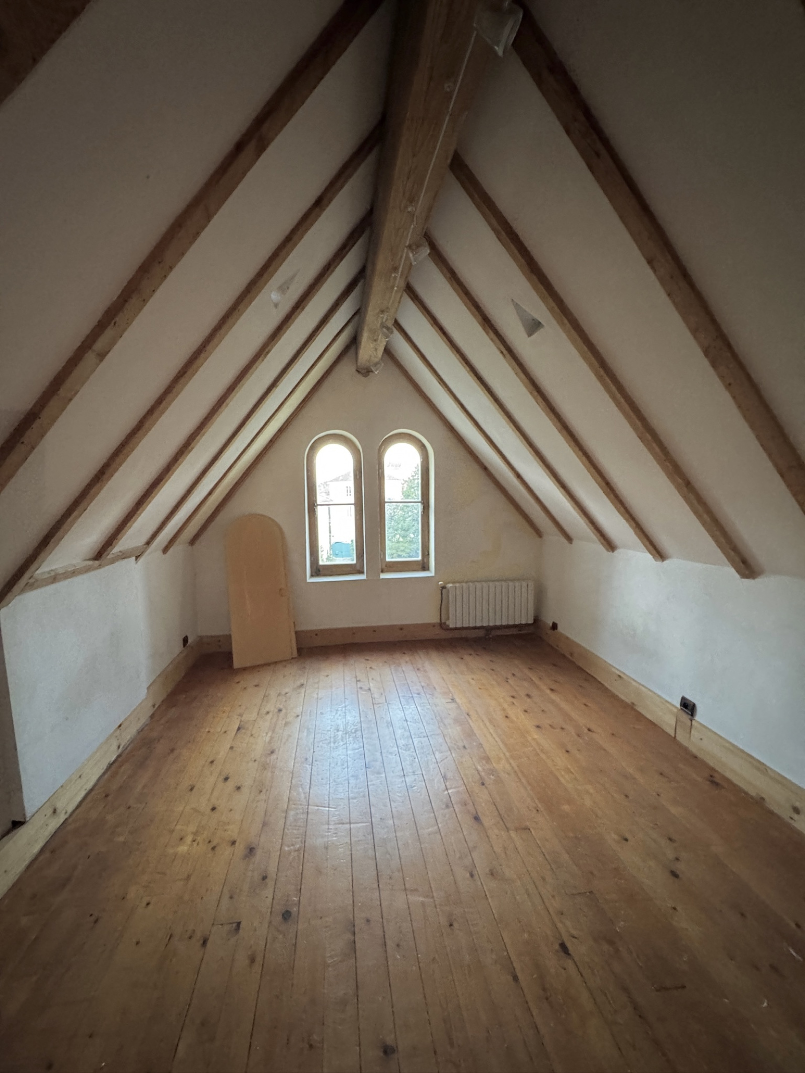 Au 2ᵉ étage, deux chambres disposent chacune d’un grenier attenant, dont l’une bénéficie en plus d’une mezzanine. Ce niveau comprend également une troisième chambre, une pièce de dressing indépendante et une salle d’eau avec douche et WC.