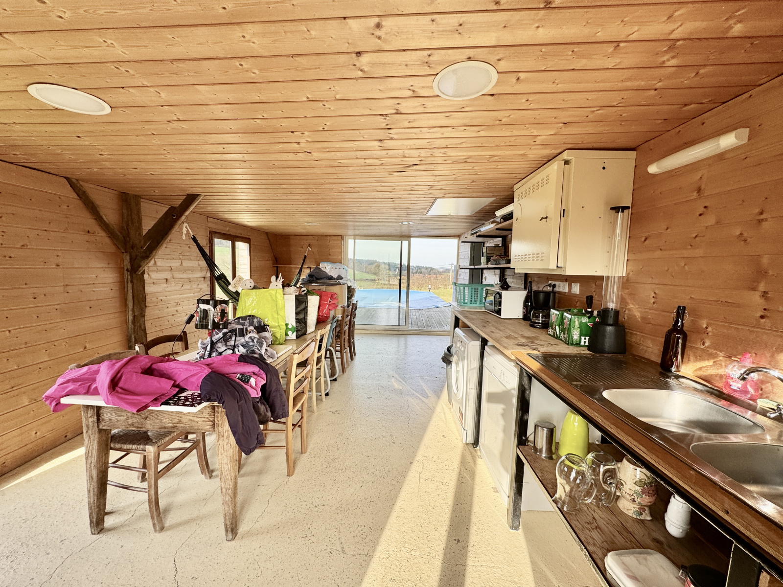 Un espace détente avec une pièce à vivre de 30 m2 bénéficiant d’une cuisine et ouvrant sur une grande terrasse et la piscine.