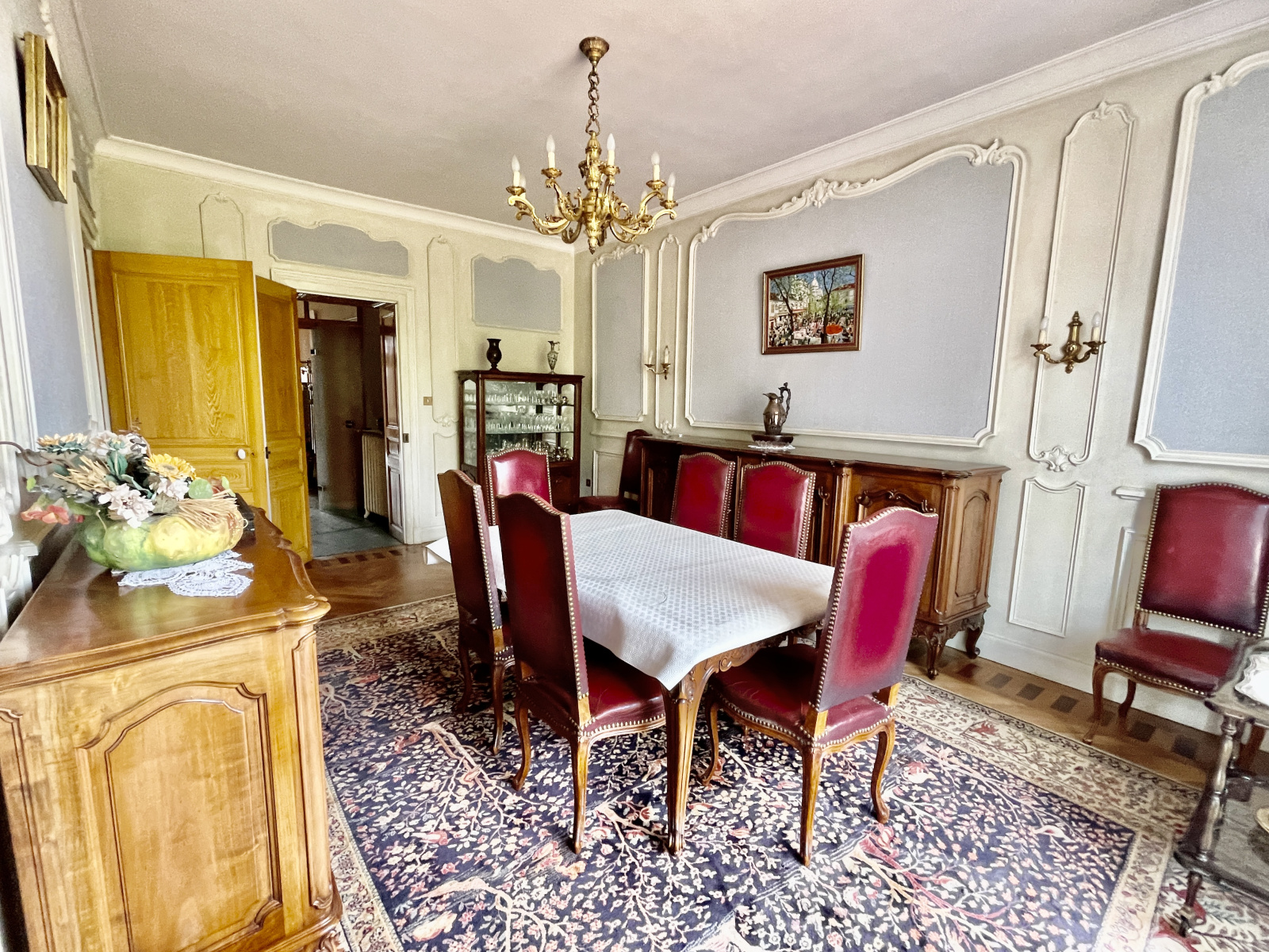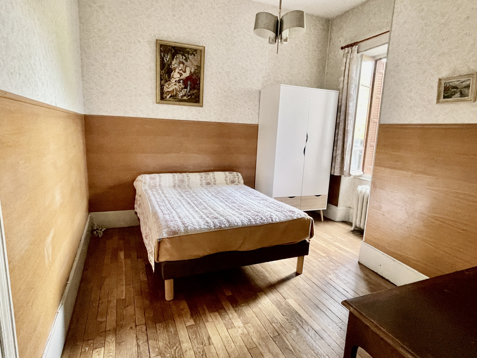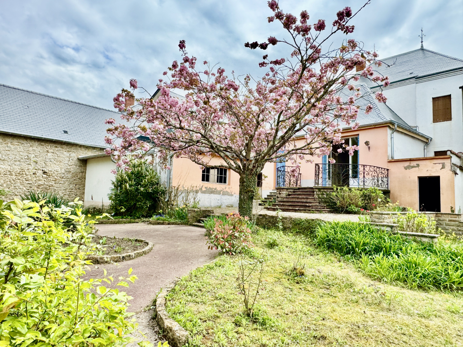 La demeure bourgeoise principale de 210 m2 a su conserver tous les éléments caractéristiques de l’ancien ( carreaux de ciment, cheminée, moulure, boiserie, hauteur sous plafond, escalier en bois, parquet pointe de Hongrie …). A rafraichir, elle est agencée comme suit: un bel hall d’entrée dessert de part et d’autres un très beau salon avec cheminée, une salle à manger bénéficiant d’une terrasse, un petit salon, une cuisine ouvrant sur le parc, une chambre avec salle d’eau attenante, un bureau et des toilettes. Un splendide escalier en bois dessert les étages supérieurs bénéficiant de 5 chambres supplémentaires et une salle de bains. Combles de 70 m2 offrant un potentiel d’agrandissement.