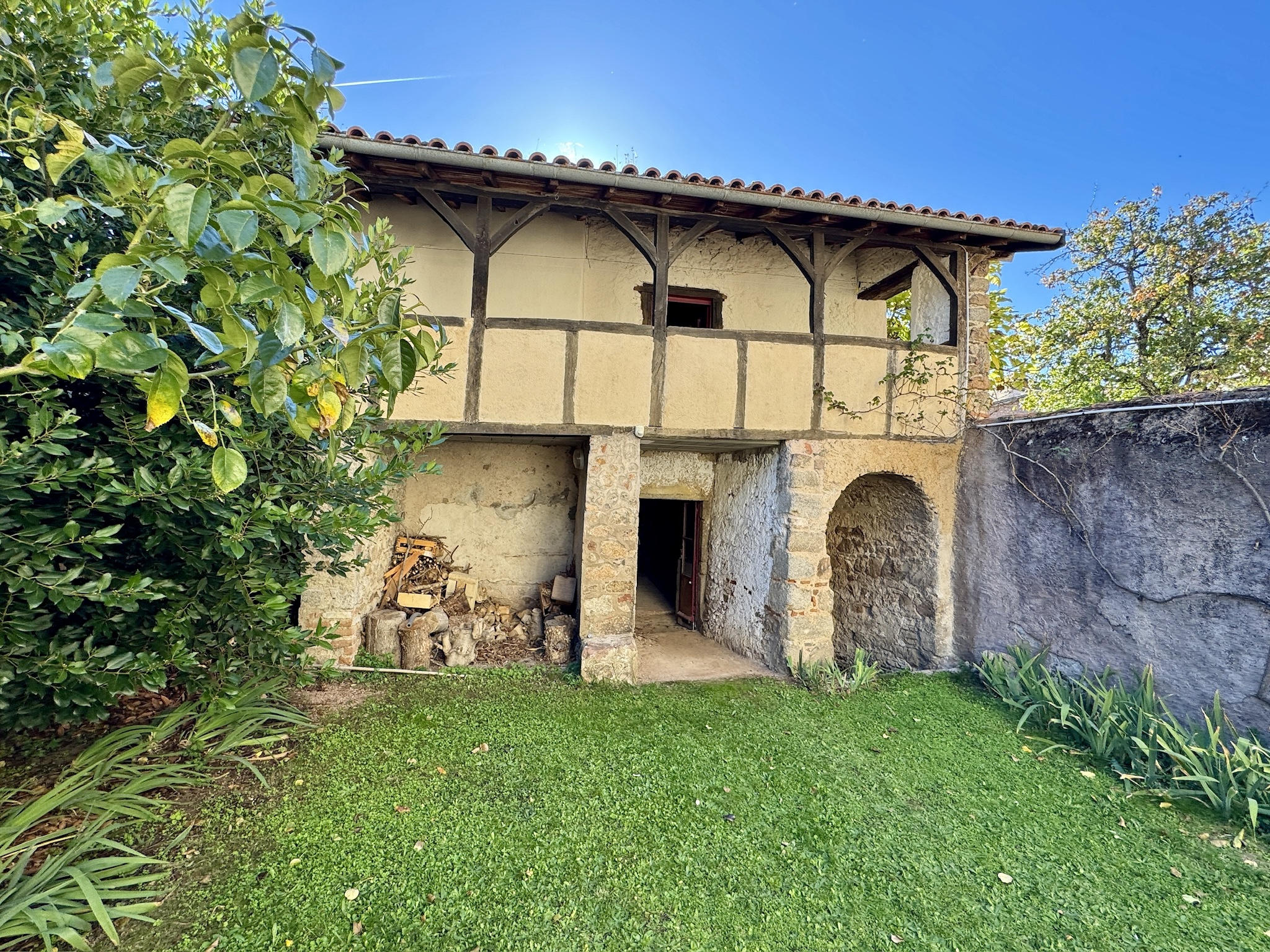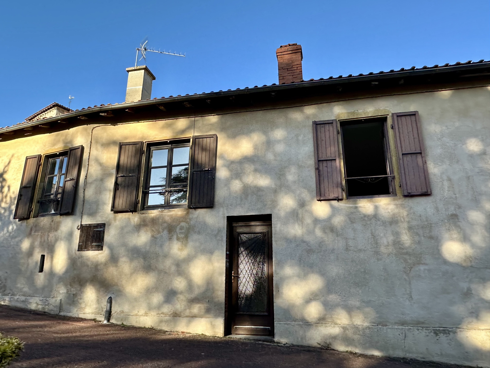 À l’arrière, la maison annexe d’environ 140 m², à rénover entièrement, dispose d’une galerie couverte à l’italienne. Actuellement divisée en deux logements avec pièces de vie, chambres, cuisines, salles d’eau. Au sous-sol : garage, chaufferie avec pompe à chaleur, cave.