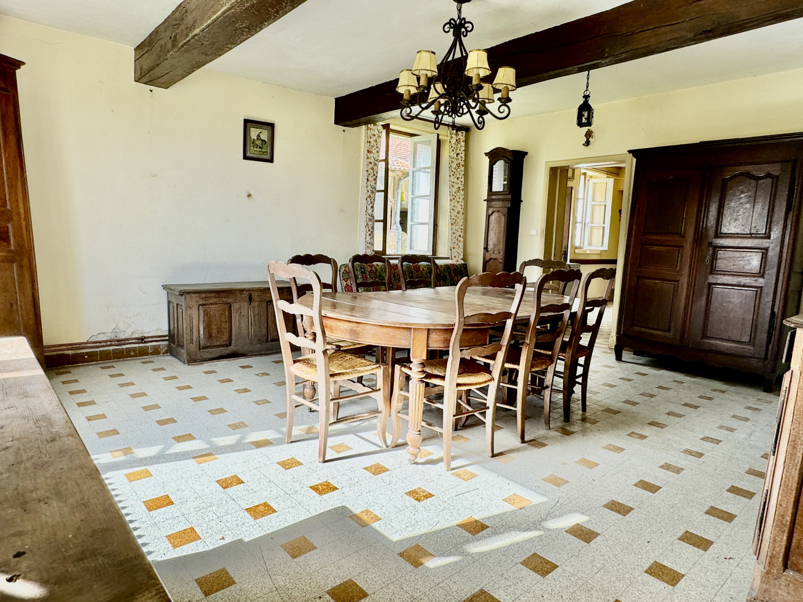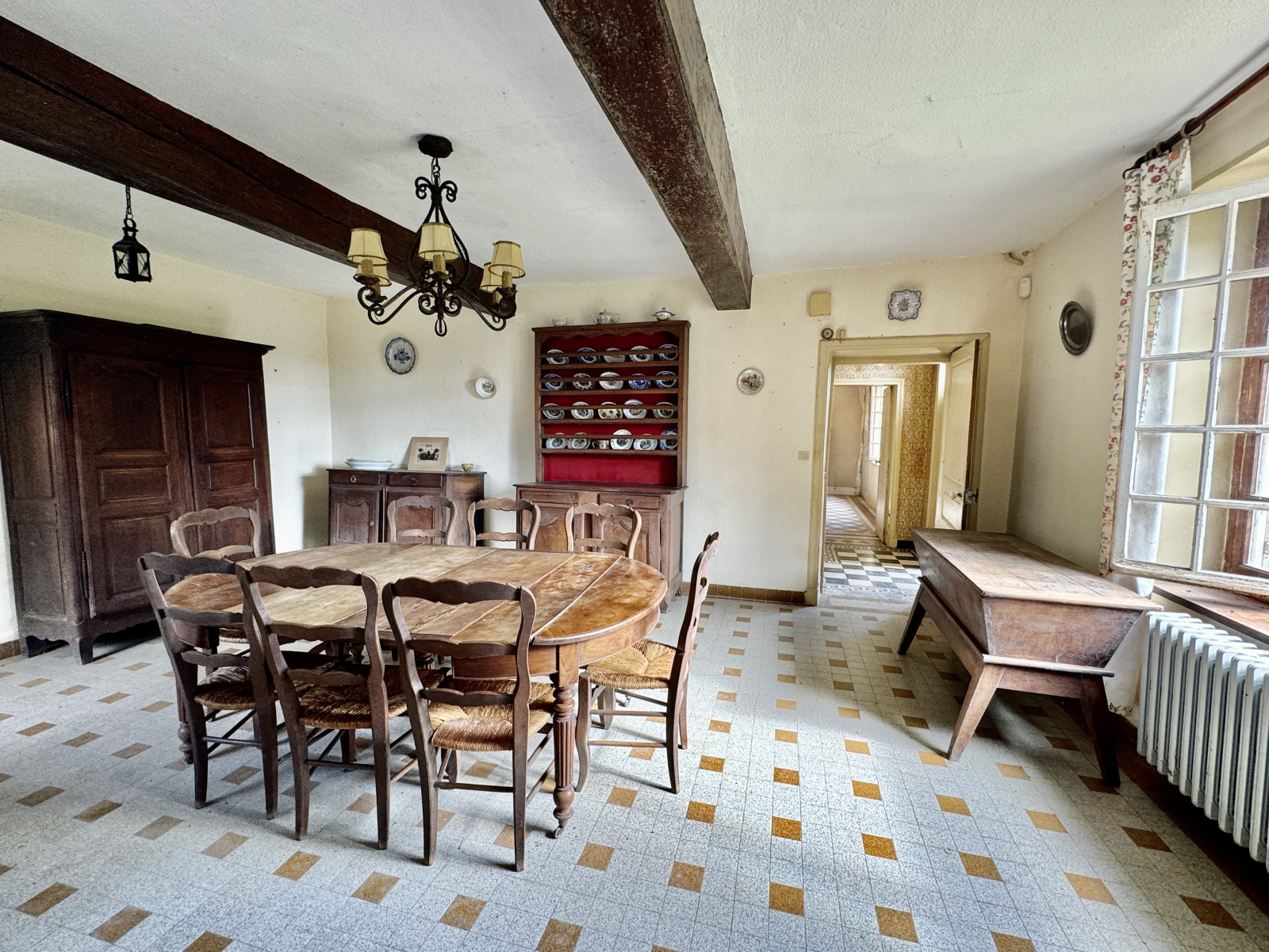 La demeure principale de 270 m2 ayant conservé tous les éléments caractéristiques de l'ancien (cheminée, escalier en pierre, carreaux de ciment, tommettes, parquet, encadrement en
