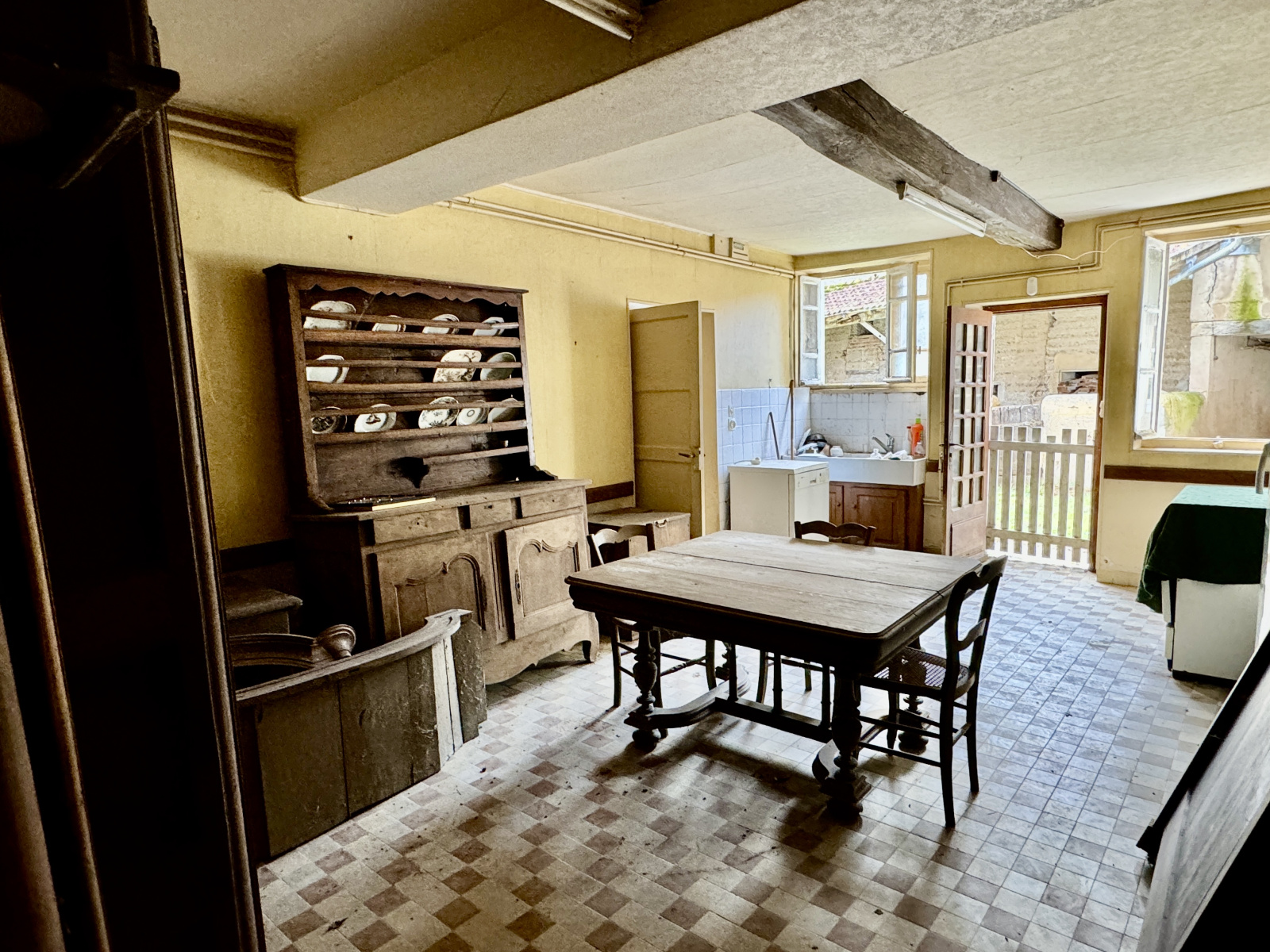 pierre, ..) est agencée comme suit: au rez-de-chaussée de chaussée une pièce à vivre, un salon, une grande cuisine familiale, une salle de bains, une chambre, une cave/cellier, une