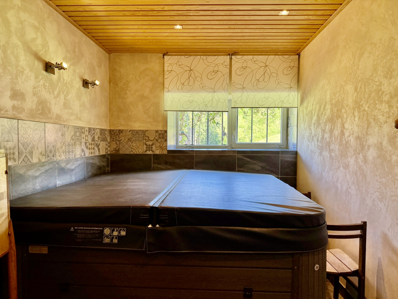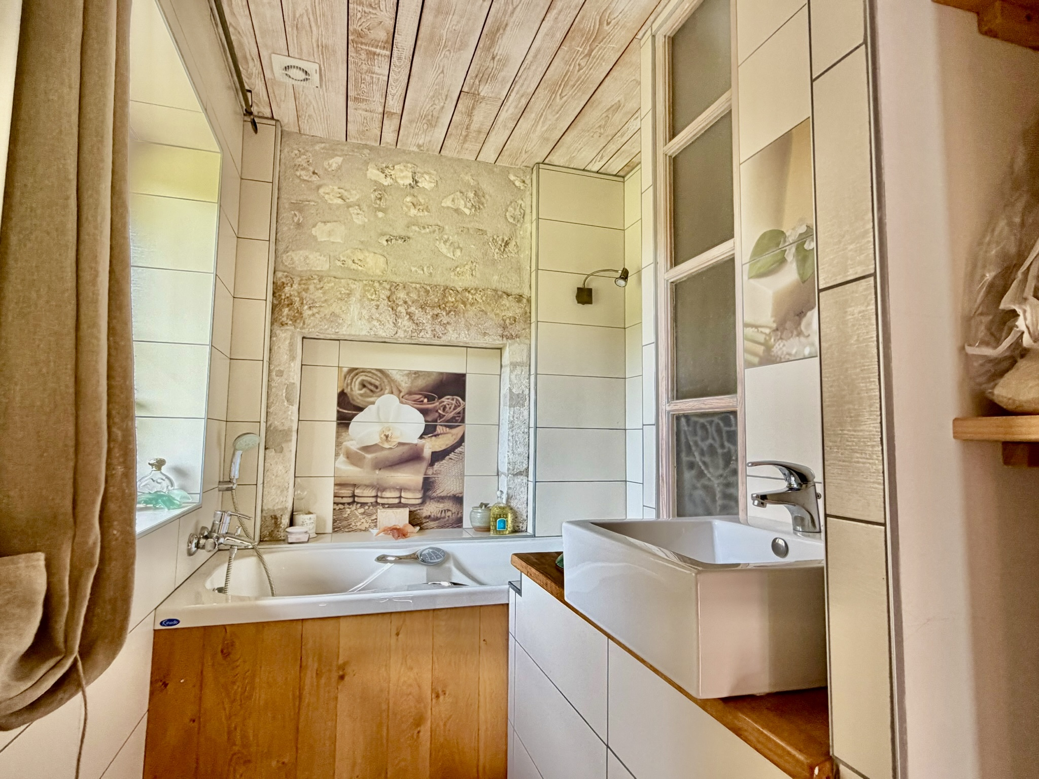 La maison principale propose de beaux volumes avec plusieurs espaces de vie chaleureux ainsi que cinq chambres, chacune disposant de sa salle de bains, offrant un cadre idéal pour une activité d’accueil ou une grande maison de famille. Un espace bien-être avec sauna et jacuzzi vient compléter l’ensemble, renforçant l’atmosphère de détente qui règne sur les lieux.
