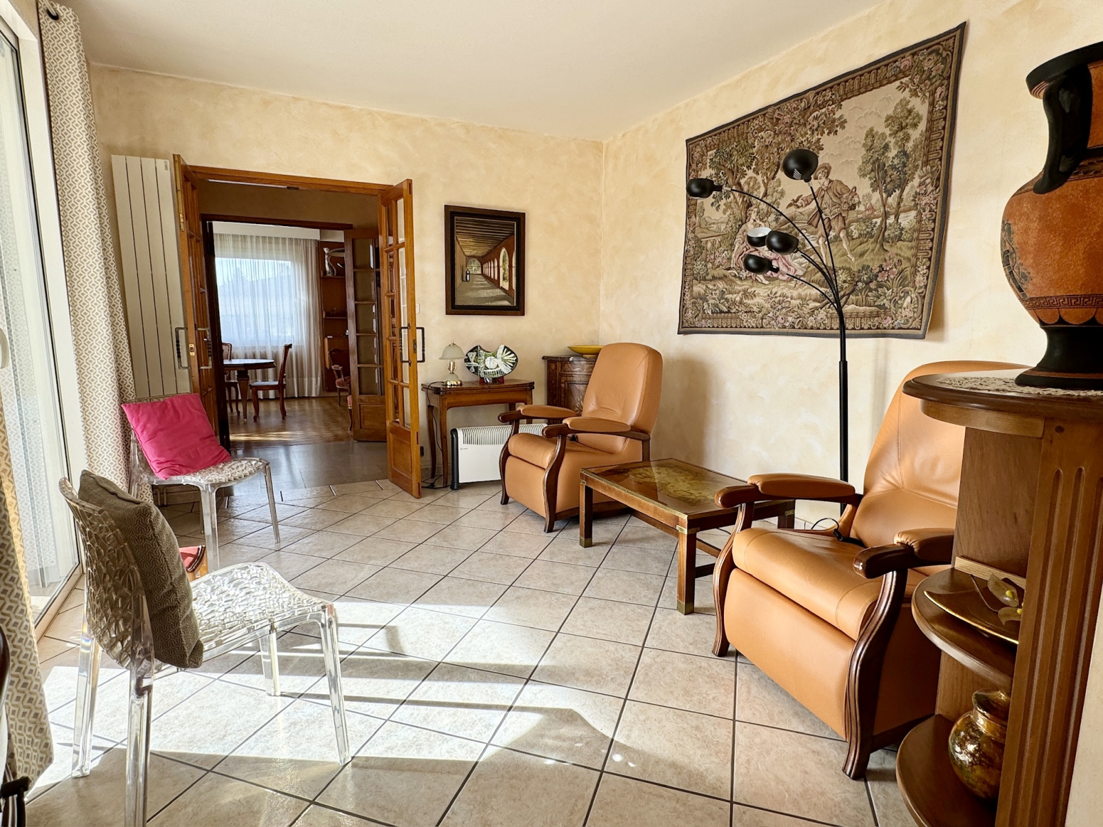 Entièrement isolée par l’extérieur et équipée de menuiseries en double vitrage ainsi que de volets roulants, elle accueille au rez-de-chaussée une salle à manger traversante baignée de lumière, un salon chaleureux, une cuisine indépendante, deux chambres, un bureau, une salle de bain, une salle d’eau et des toilettes.