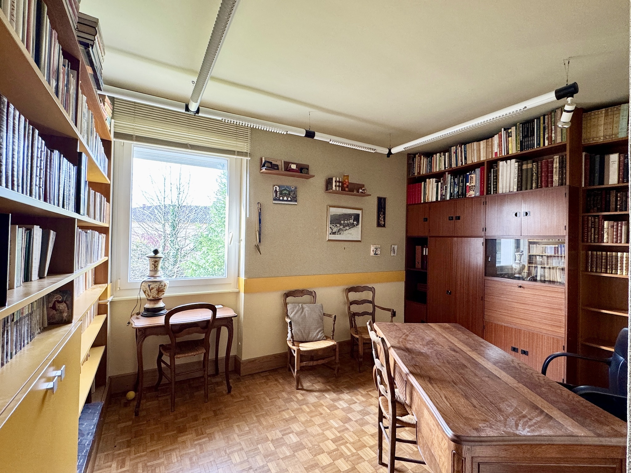 Le sous-sol complet constitue un espace à part entière avec une grande pièce dotée d’une cheminée, une salle polyvalente, un cellier, une cave, une lingerie, une buanderie et la chaufferie, formant un ensemble idéal pour la vie familiale, les loisirs ou la réception.