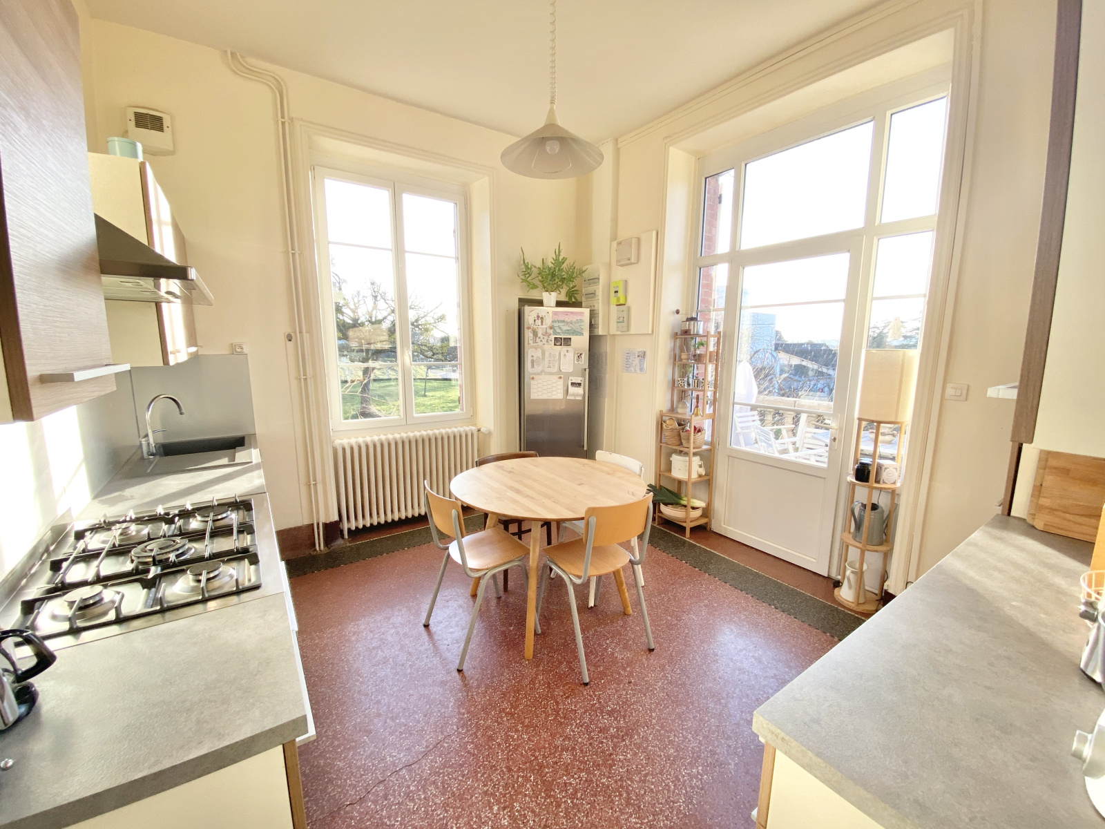 La Clayette (71800)SOUS OFFRE-EXCLUSIVITÉ-SUD BOURGOGNE, proche de PARAY LE MONIAL, au calme, très belle maison de charme datant de 1920 d'une superficie de 146 m2 avec sous-sol entier sur un terrain clos et arboré de 2020 m2. Entièrement réhabilitée au cours de ces dernières années mais ayant conservé tous les éléments caractéristiques de l'ancien( hauteur sous plafond, escalier en bois, parquet, sol mosaïque en terrazzo…); cette demeure très lumineuse car excavée est agencée comme suit: un bel hall d'entrée dessert de part et d'autres: un double séjour bénéficiant d'une cheminée/ poêle et d'une grande terrasse ouvrant sur le parc, une cuisine séparée et équipée avec accès sur l'extérieur, deux chambres, une salle d'eau et des toilettes séparées. A l'étage 3 chambres supplémentaires dont l'une avec dressing, une salle d'eau avec toilettes et des rangements. Par un accès direct par l'intérieur, le sous sol de 75 m2 bénéficie d'une cave; d'un grand atelier, d'un espace buanderie et chaufferie pouvant offrir des possibilités d'agrandissement.Huisserie double vitrage. Toiture en très bon état. Tout à l'égout. Fibre.Une grande terrasse, un petit garage, un puits qui alimente une réserve d'eau, un verger, un parc arboré et paysager viennent parfaire cette demeure familiale. Terrain piscinable.Proche de toutes commodités car au coeur d'un village dynamique et commerçant(école, commerce, gare à 5 min), à 2h30 de Paris par TGV .Cette propriété pourra convenir à de nombreux projets. Possibilité de création d'activité chambres d'hôtes, idéale en demeure de famille.
