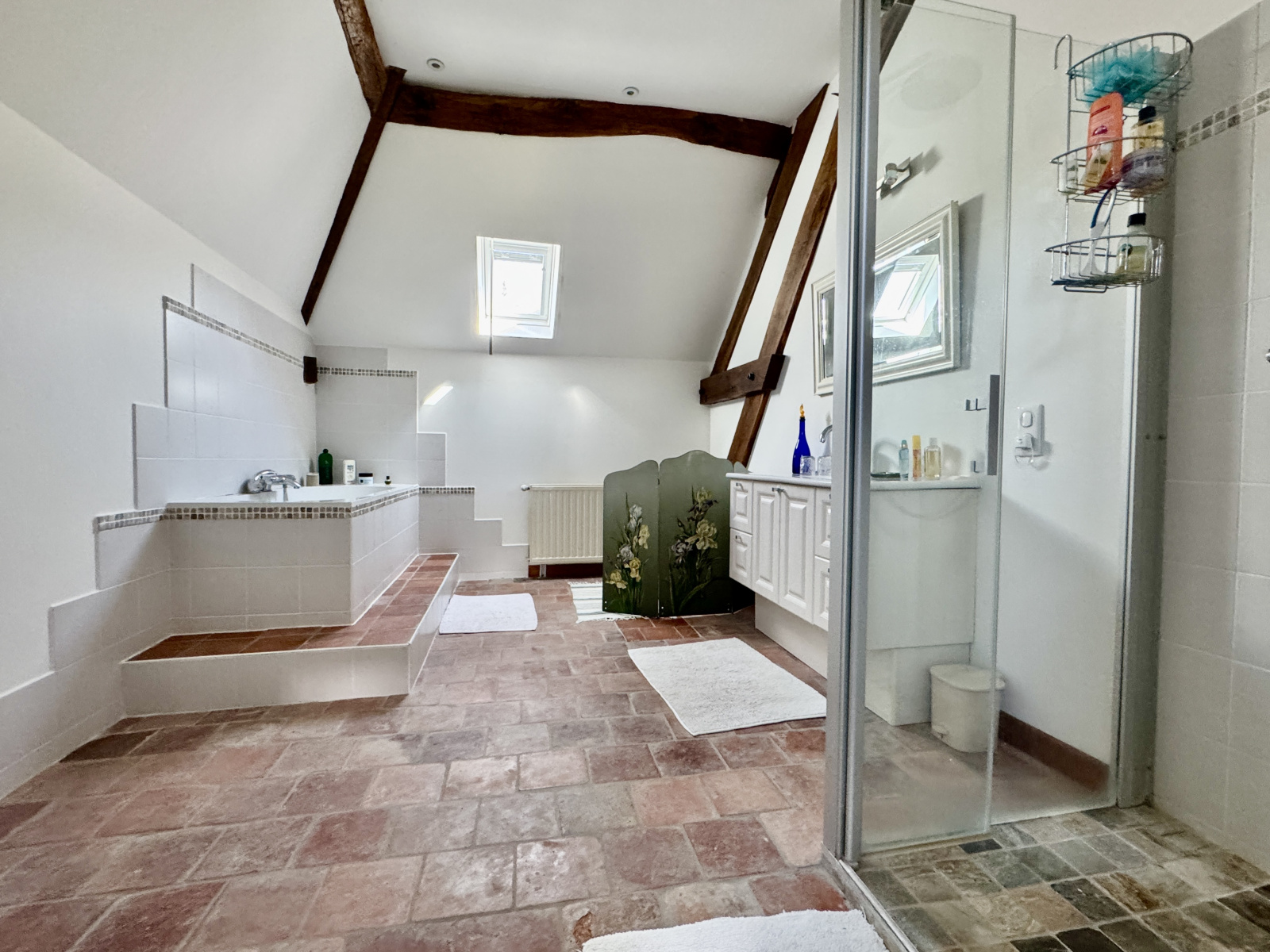 À l’étage, deux suites et une chambre composent un espace nuit confortable, tandis que le dernier niveau accueille une nouvelle suite, deux chambres supplémentaires et une salle d’eau.