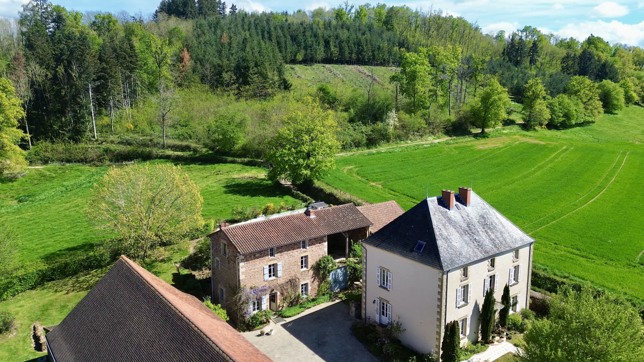 Dans un environnement bucolique, au calme absolu et sans aucun vis-à-vis, découvrez cet ensemble immobilier rare composé de deux maisons de caractère, nichées au cœur d’un parc arboré d’environ 3200 m² avec vue dégagée sur la campagne environnante.