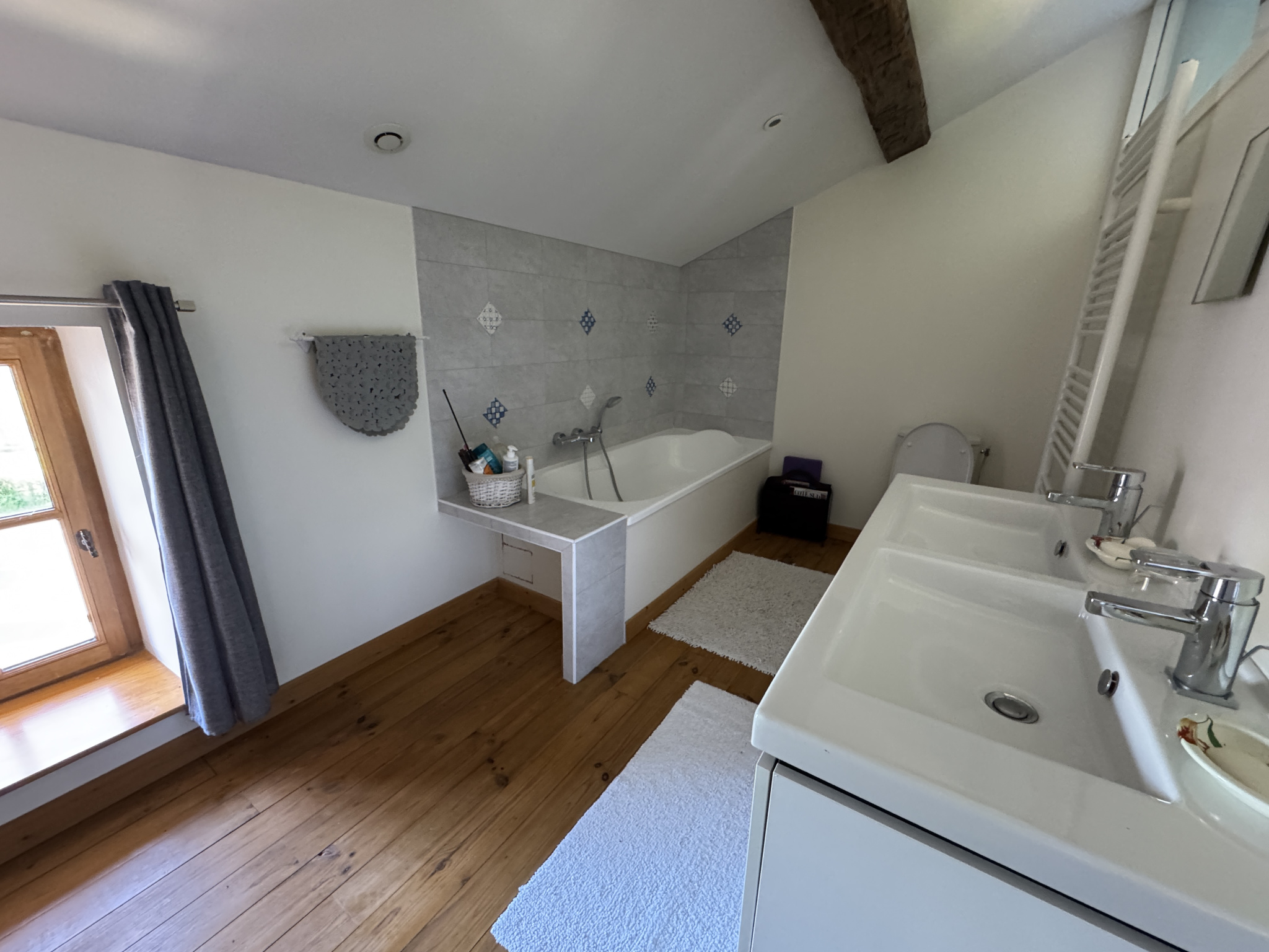 La seconde maison, entièrement rénovée avec goût, développe environ 160 m² habitables. Elle allie le charme de l’ancien à un confort moderne, avec une cuisine, un salon et une buanderie en rez-de-jardin. Les étages offrent plusieurs espaces de vie, deux chambres, ainsi qu’une agréable circulation vers l’extérieur et la piscine.