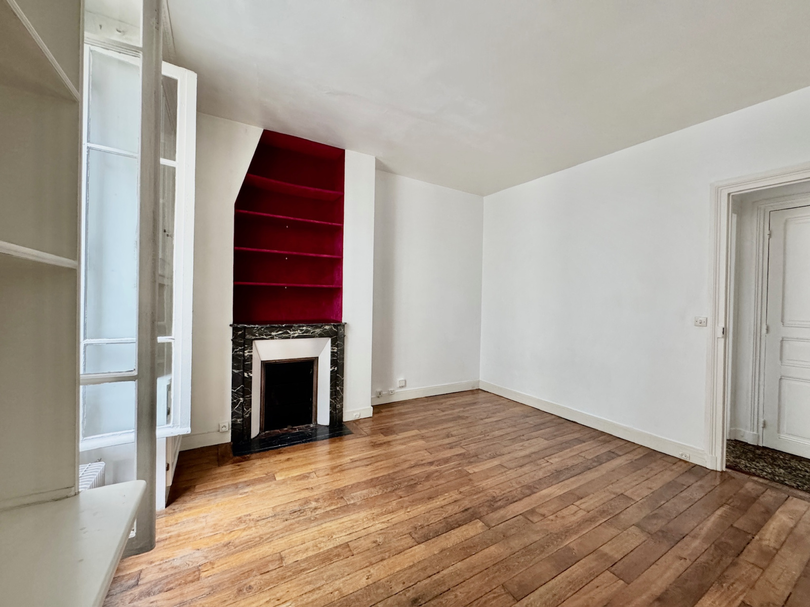 Dans un quartier très prisé, au calme absolu, situé au 3ᵉ étage sans ascenseur d’un très bel immeuble du XIXᵉ siècle, superbe appartement de 39,21 m² ayant préservé toutes les caractéristiques de l’ancien, avec parquet massif, cheminées et une belle hauteur sous plafond.