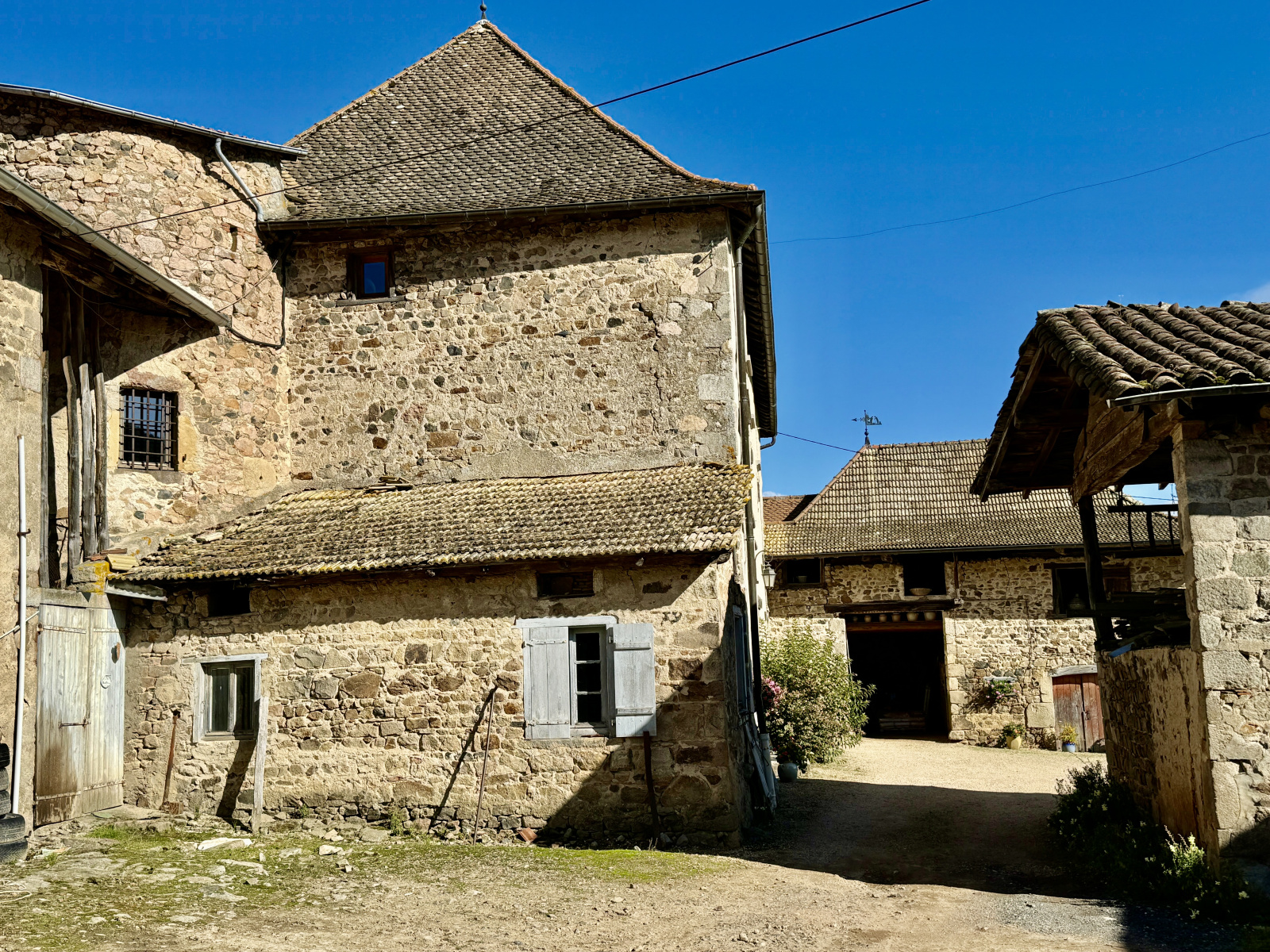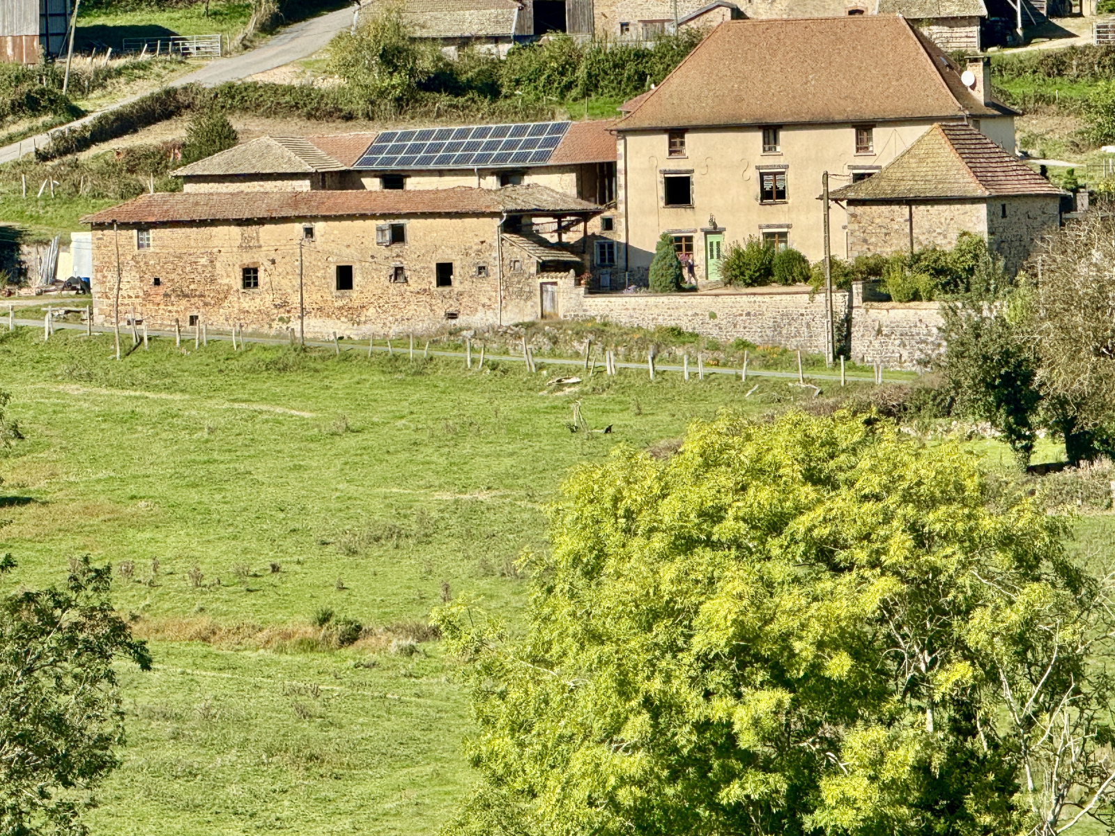 Beaujeu (69430)EXCLUSIVITÉ-AUX CONFINS DU HAUT BEAUJOLAIS ET DE LA BOURGOGNE DU SUD- A 1H 00 de LYON, à 2h 20 de Genève, au calme, dans un écrin de verdure naturellement préservé avec vue imprenable sur les prairies vallonnées environnantes; très belle propriété en agriculture raisonnée, composée d’un ancien château du XII avec tour et dépendances, de plus de 3000 M2 de bâtiments agricoles sur un ensemble de plus de 105 ha à exploiter dont 15 ha en propriété avec bois et pâtures en agriculture raisonnée, agrémenté d’une source et d’un ruisseau.