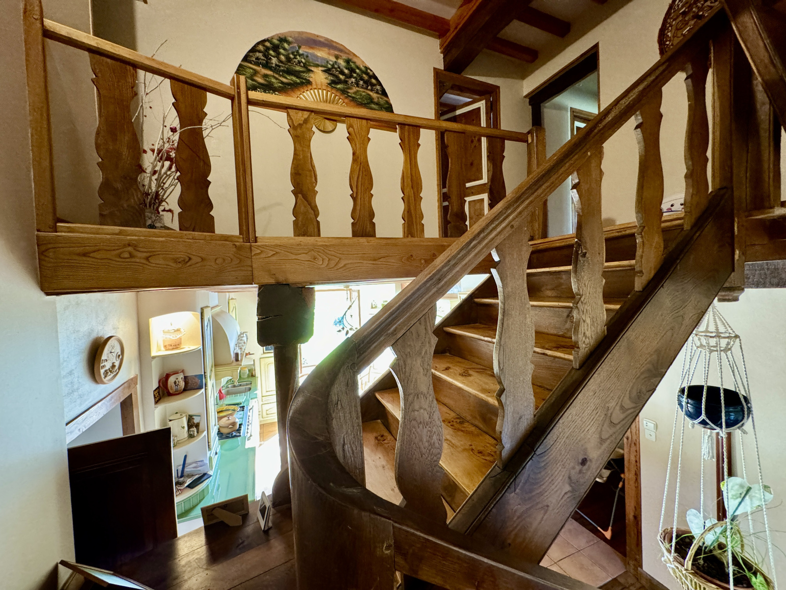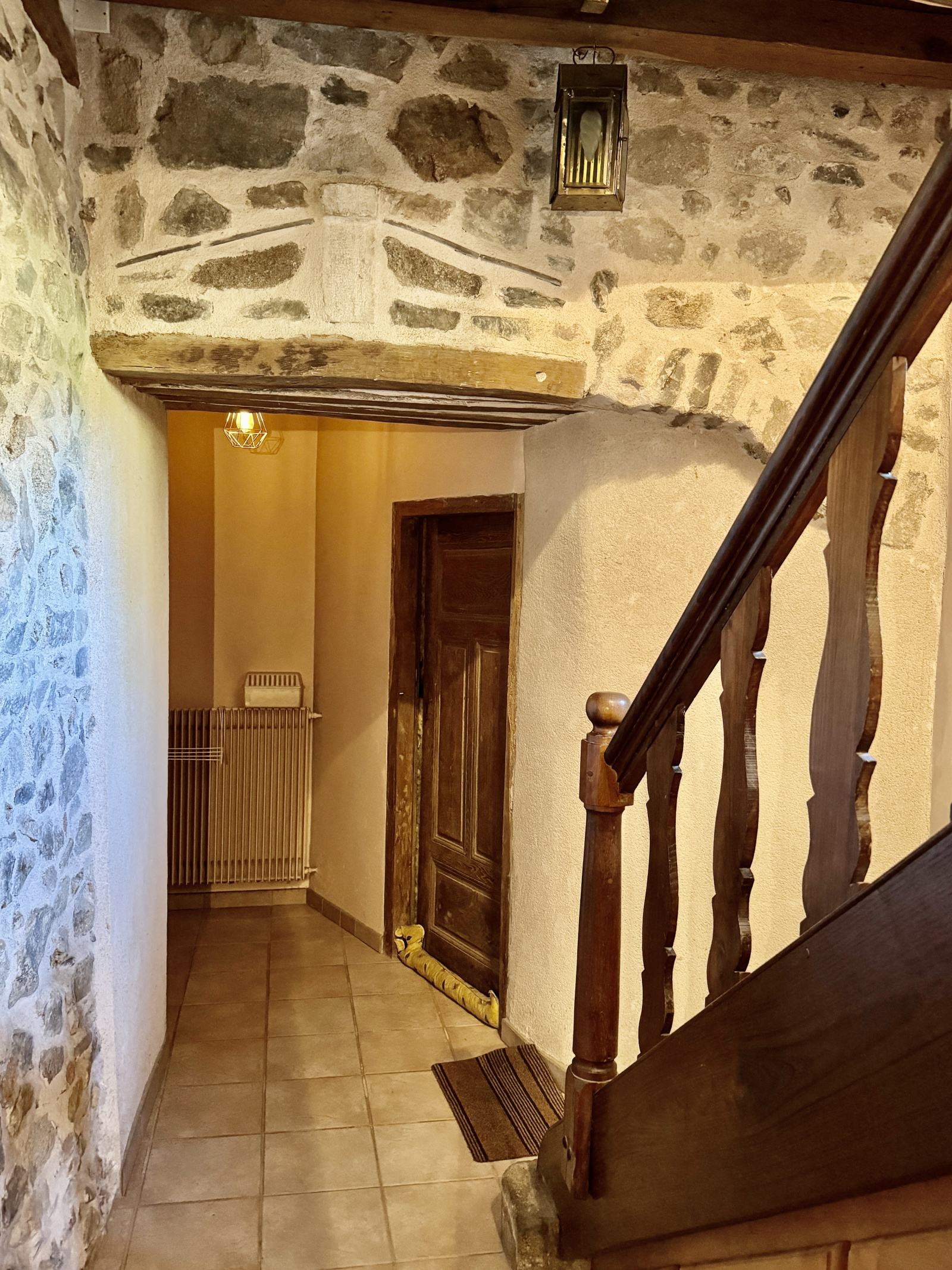 Ayant conservé des éléments caractéristiques de l’ancien( poutres apparentes, encadrement en pierre, boiserie…) , d’une superficie totale de 330 m2, cette demeure de caractère a bénéficié d'une restauration au cours de ces dernières décennies. Sur 3 niveaux, elle est agencée comme suit: les niveaux supérieurs constituent l’habitation principale: une vaste pièce à vivre de plus de 50 m2 avec cheminée ouvrant sur une grande terrasse de 30 m2, une cuisine entièrement équipée, un bureau dans la tour, 4 grandes chambres, 2 toilettes séparées, une salle d’eau, une salle de bains. Les combles de 100 M2 et la tour offrent un potentiel d’agrandissement.