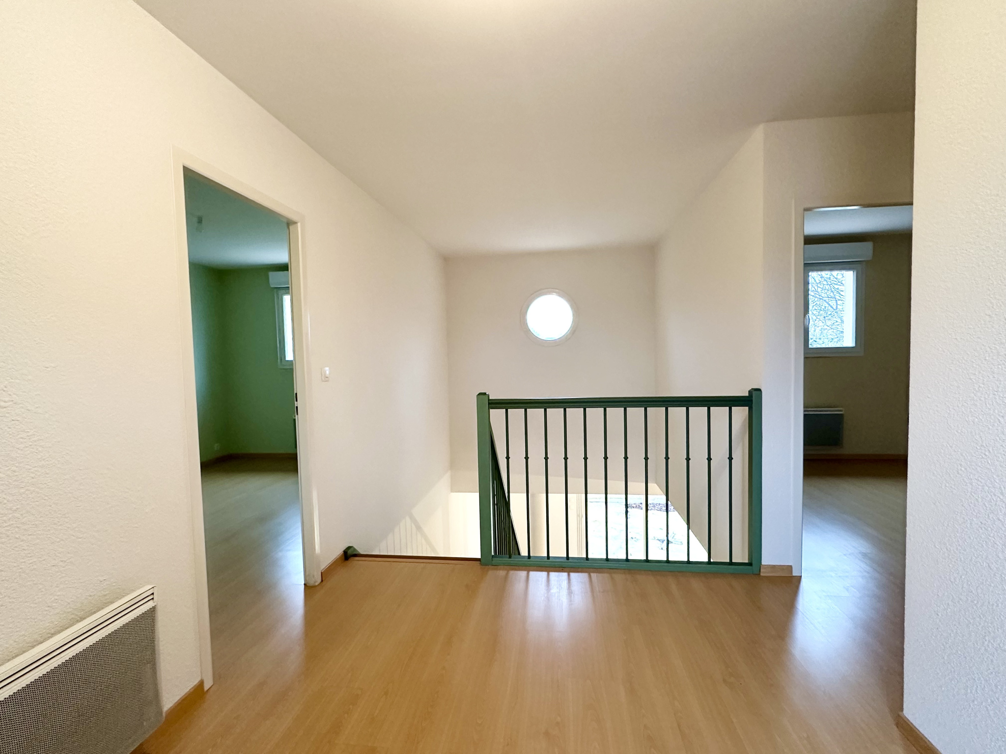 À l’étage, un hall dessert trois chambres, une salle de douche moderne et un WC.