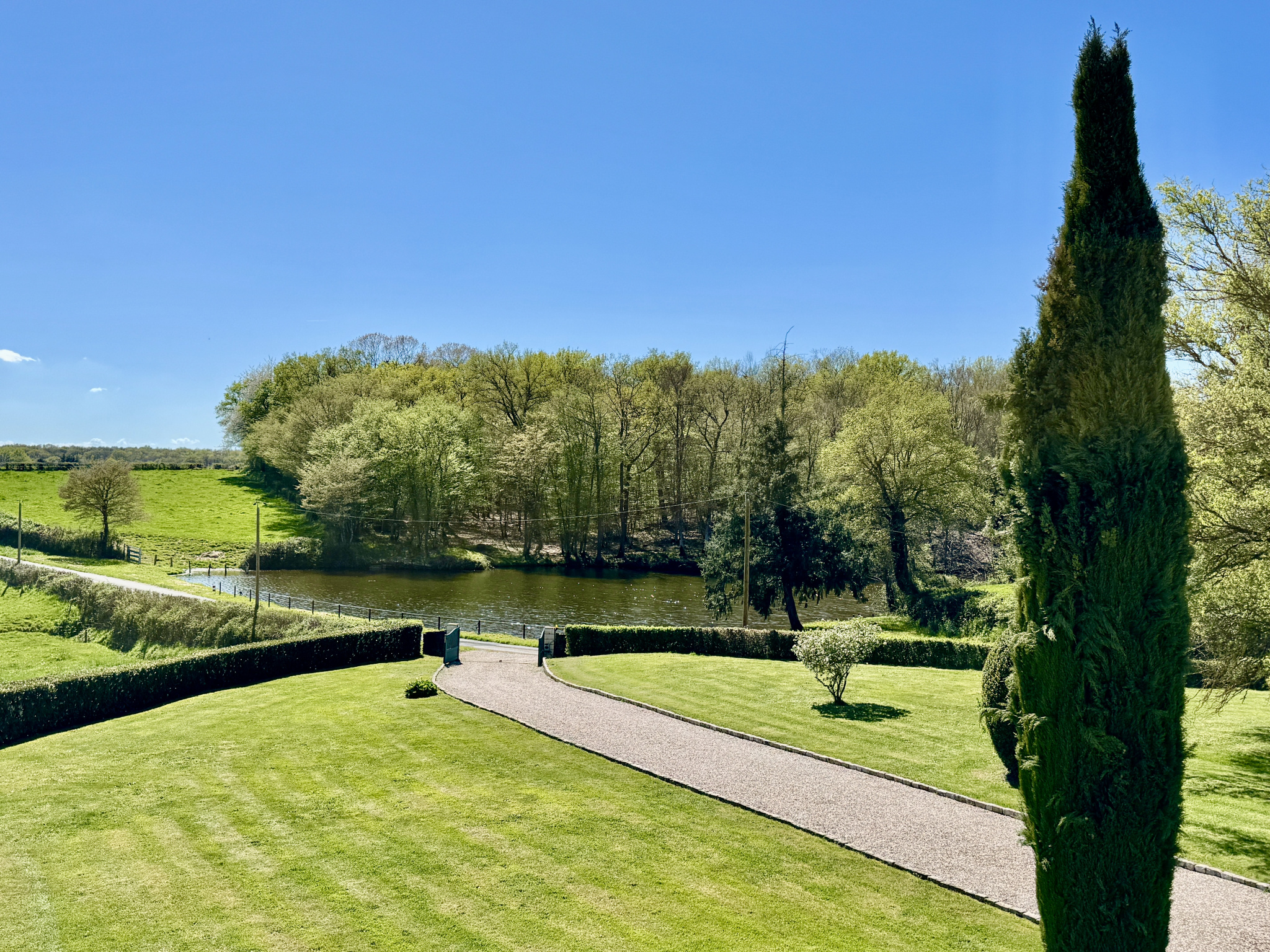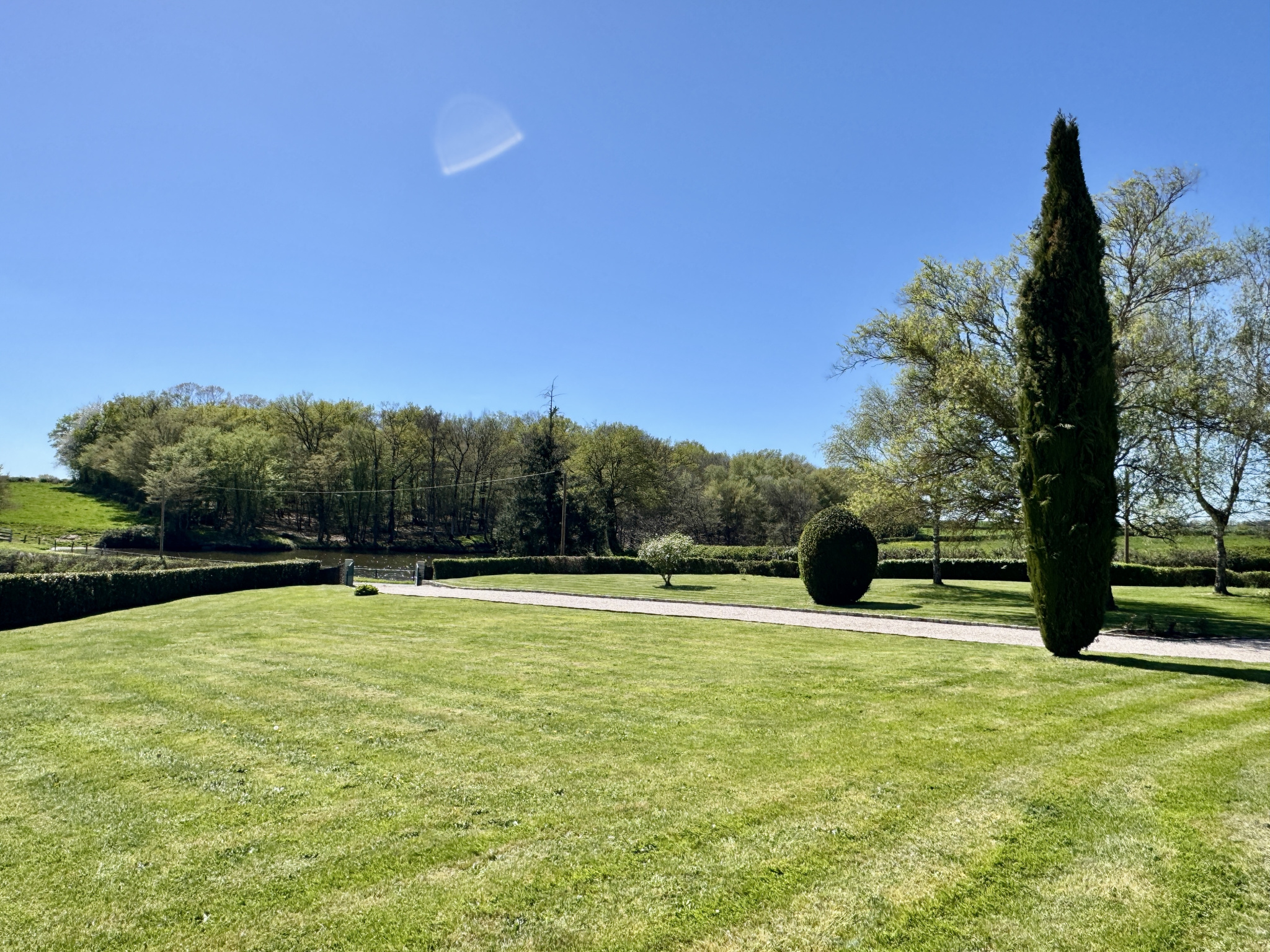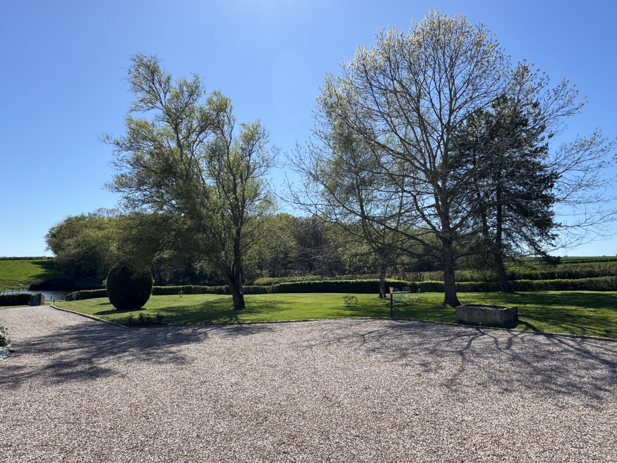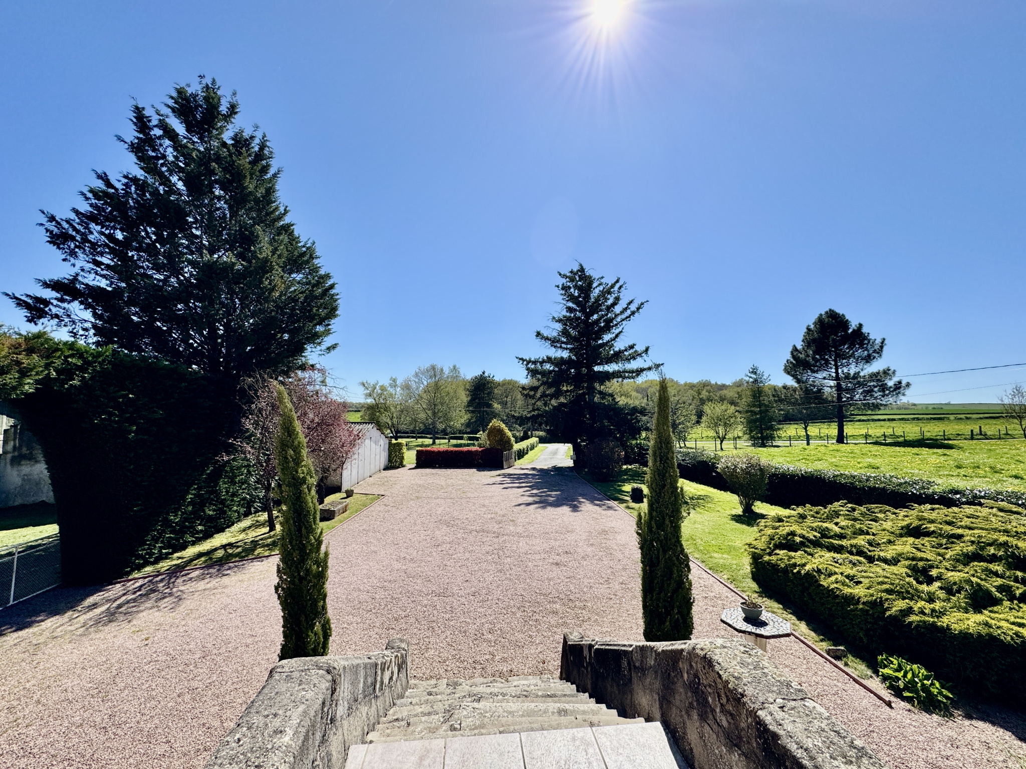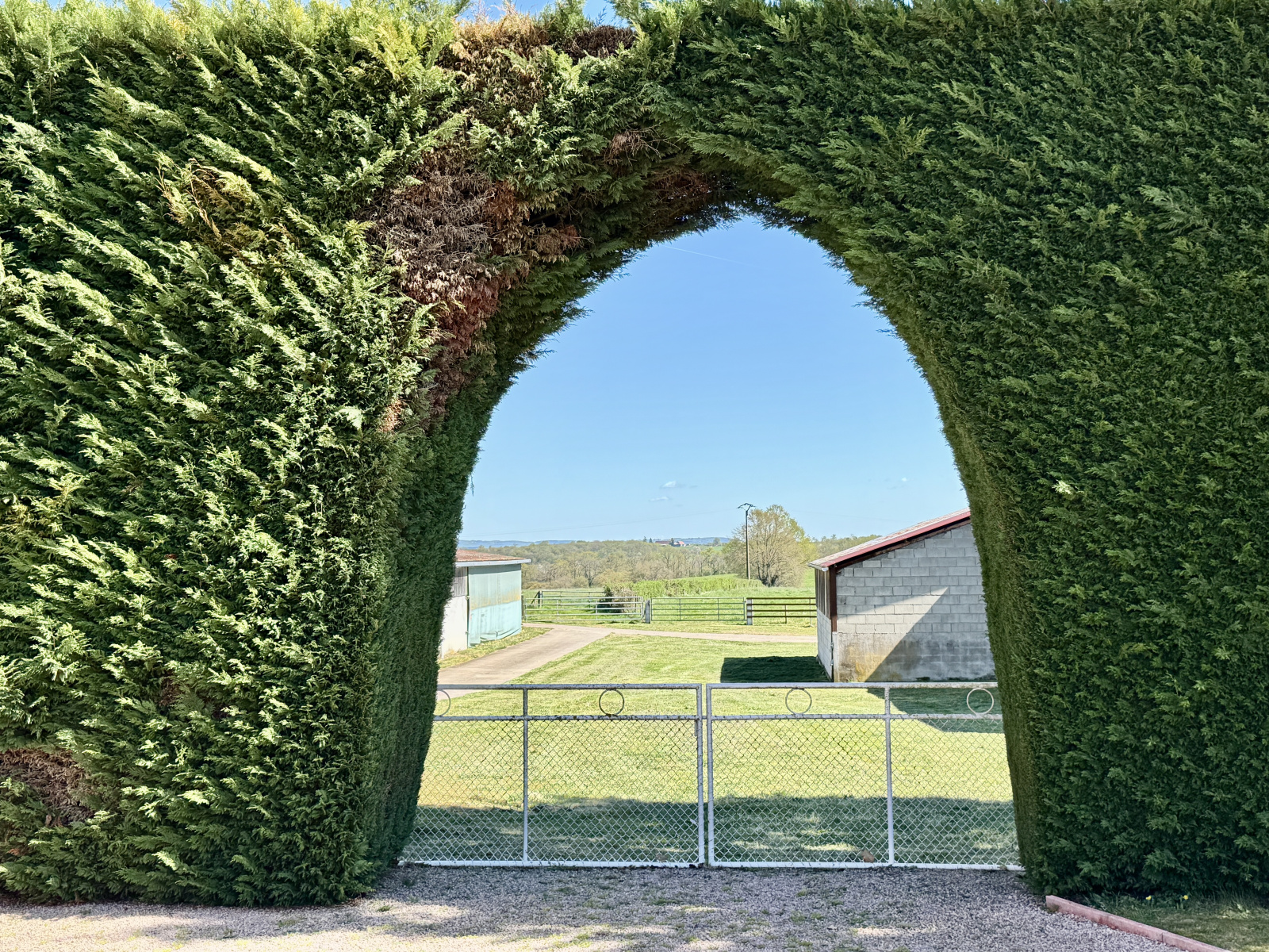 L’ensemble est implanté sur un terrain d’environ 1,3 hectare, bénéficiant d’une vue dégagée sur la campagne environnante, dans une atmosphère paisible et préservée.