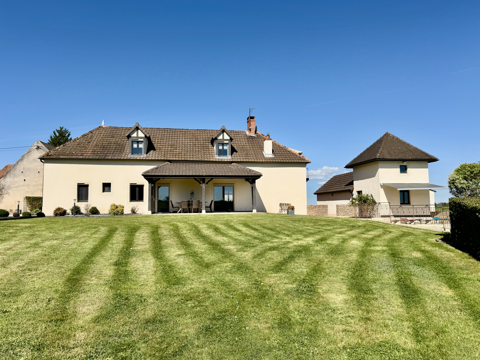 La première demeure, entièrement rénovée avec goût, développe environ 175 m² habitables.