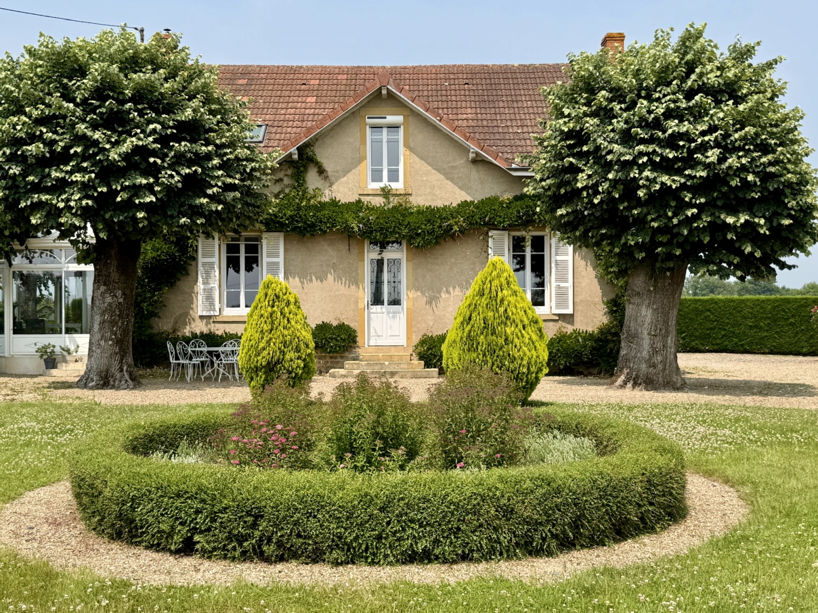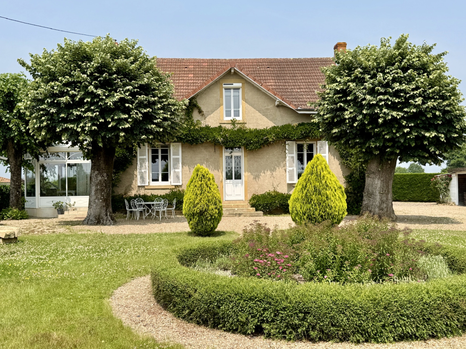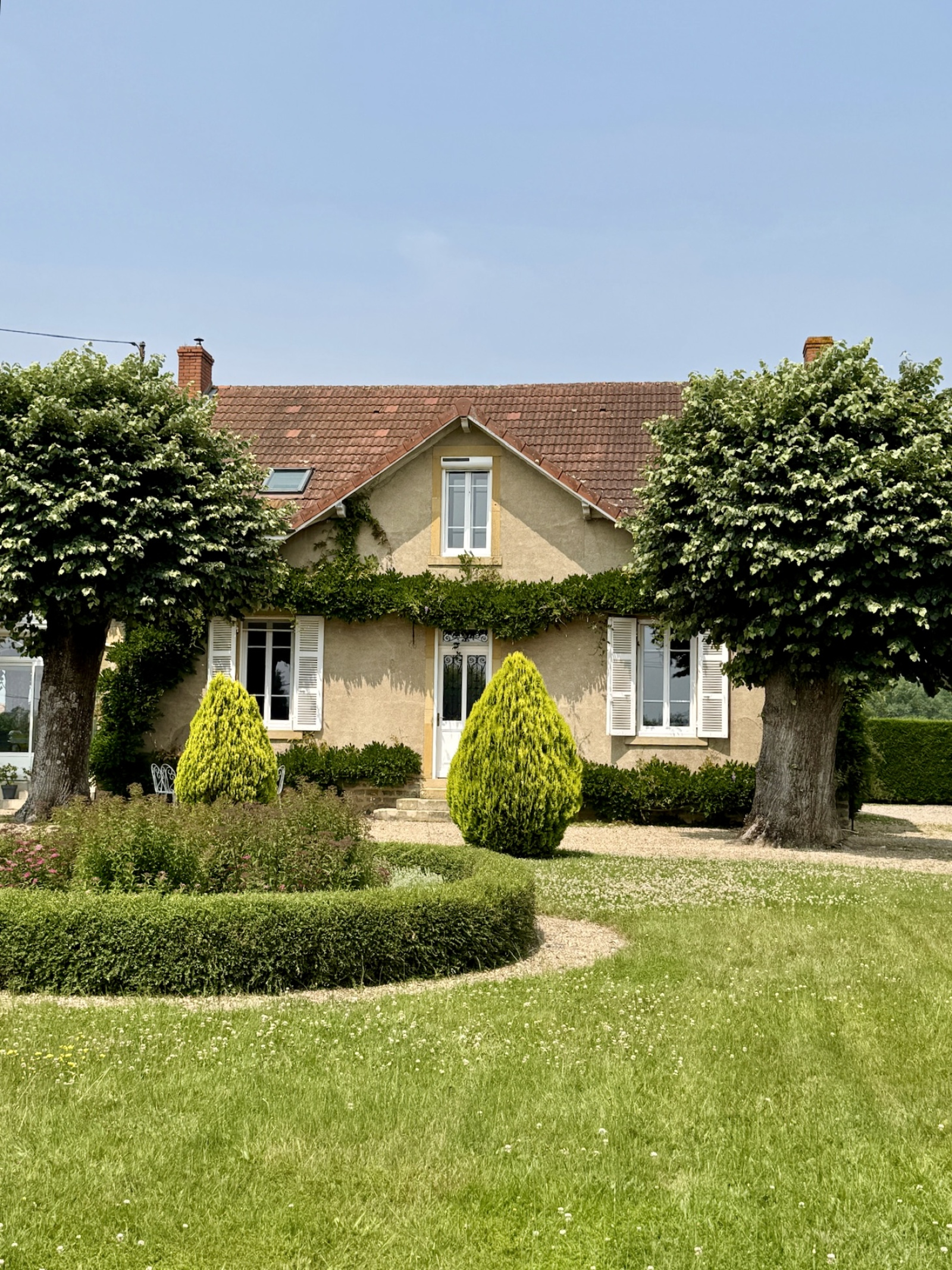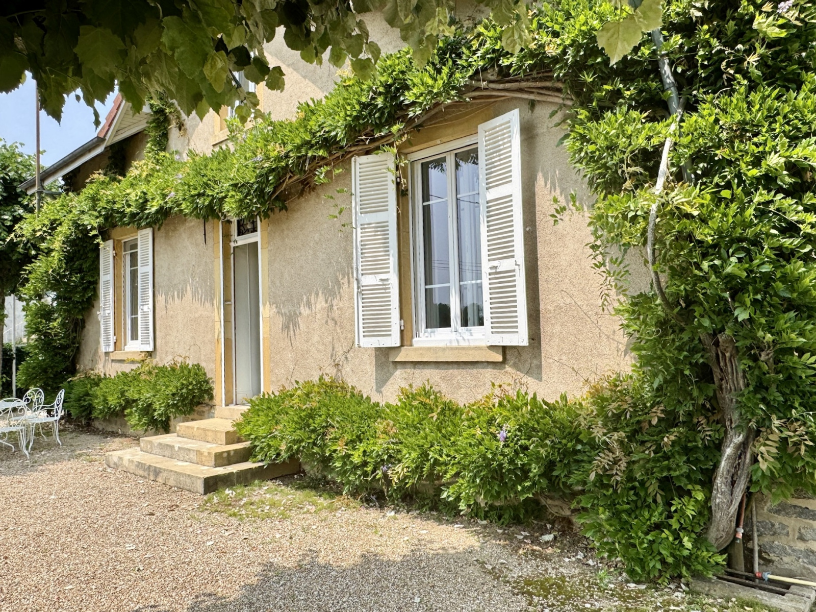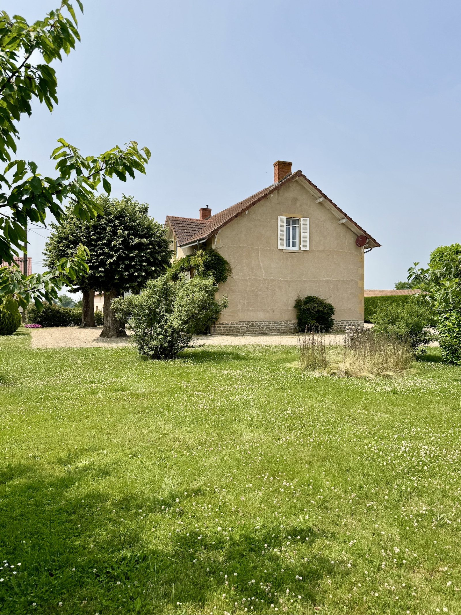 Paray-le-Monial (71600)SOUS COMPRMIS -SUD BOURGOGNE, à 1H30 de LYON, à proximité immédiate de Paray le Monial, au calme, très belle propriété composée d’une demeure de charme en pierre de 1919 avec petites dépendanceset carportsur un parc clos et arboré de 1900 m2.