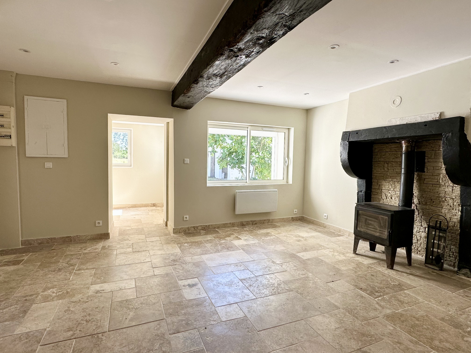 La maison principale, d’une surface habitable d’environ 150 m², a été rénovée avec goût, en alliant charme de l’ancien et matériaux nobles : sols en travertin, poutres apparentes, cheminée en pierre...