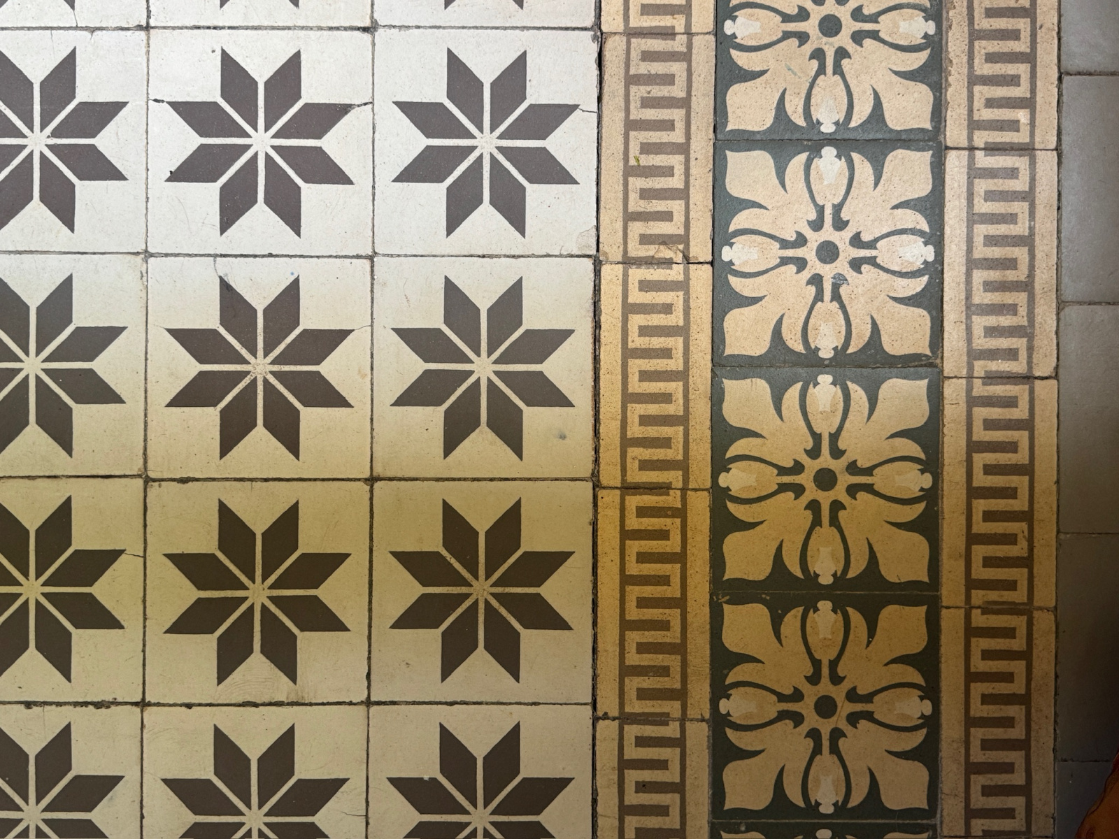 Elle se compose au rez-de-chaussée d’un hall d’entrée au sol en carreaux de ciment, d’une cuisine équipée, d’un salon avec cheminée, d’un séjour sur parquet orné d’une cheminée en marbre, d’une salle de bains et de toilettes séparées.