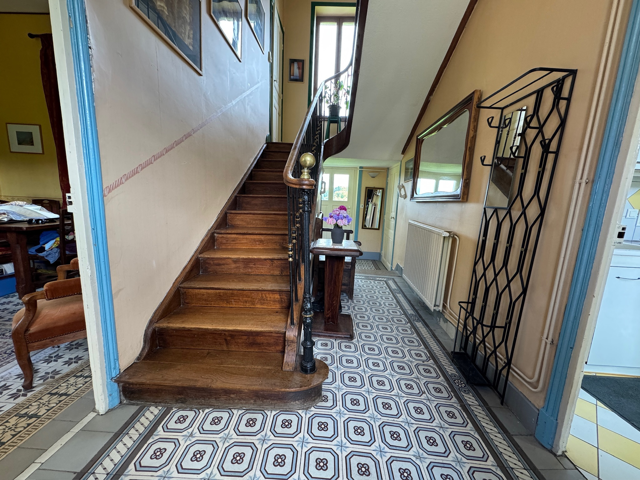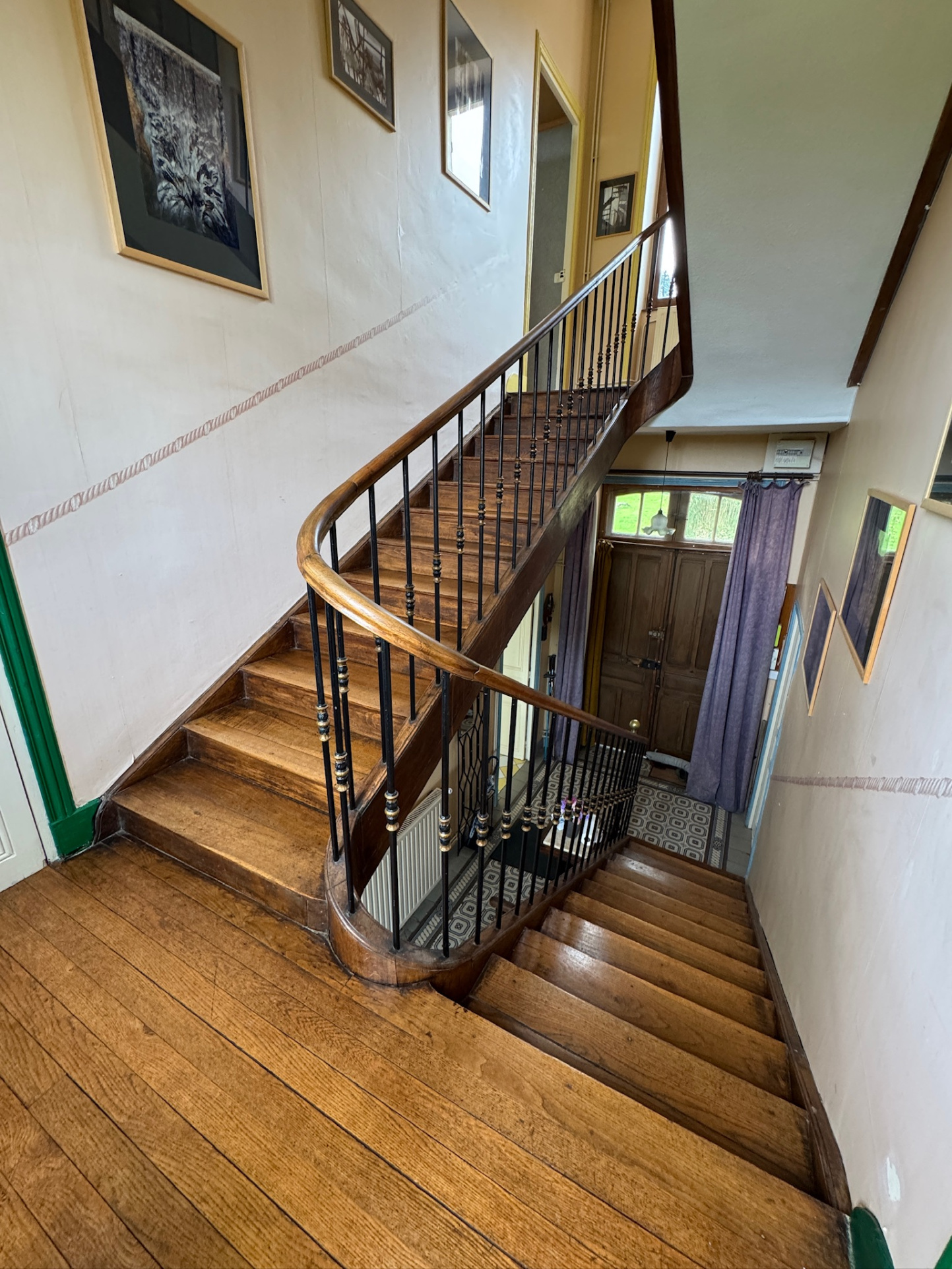 Un bel escalier en bois mène à l’étage, où se trouvent quatre chambres lumineuses avec placards et un WC.
