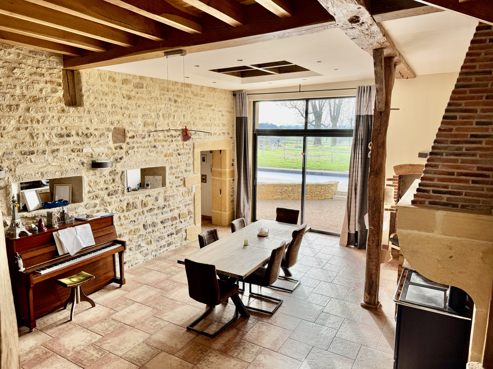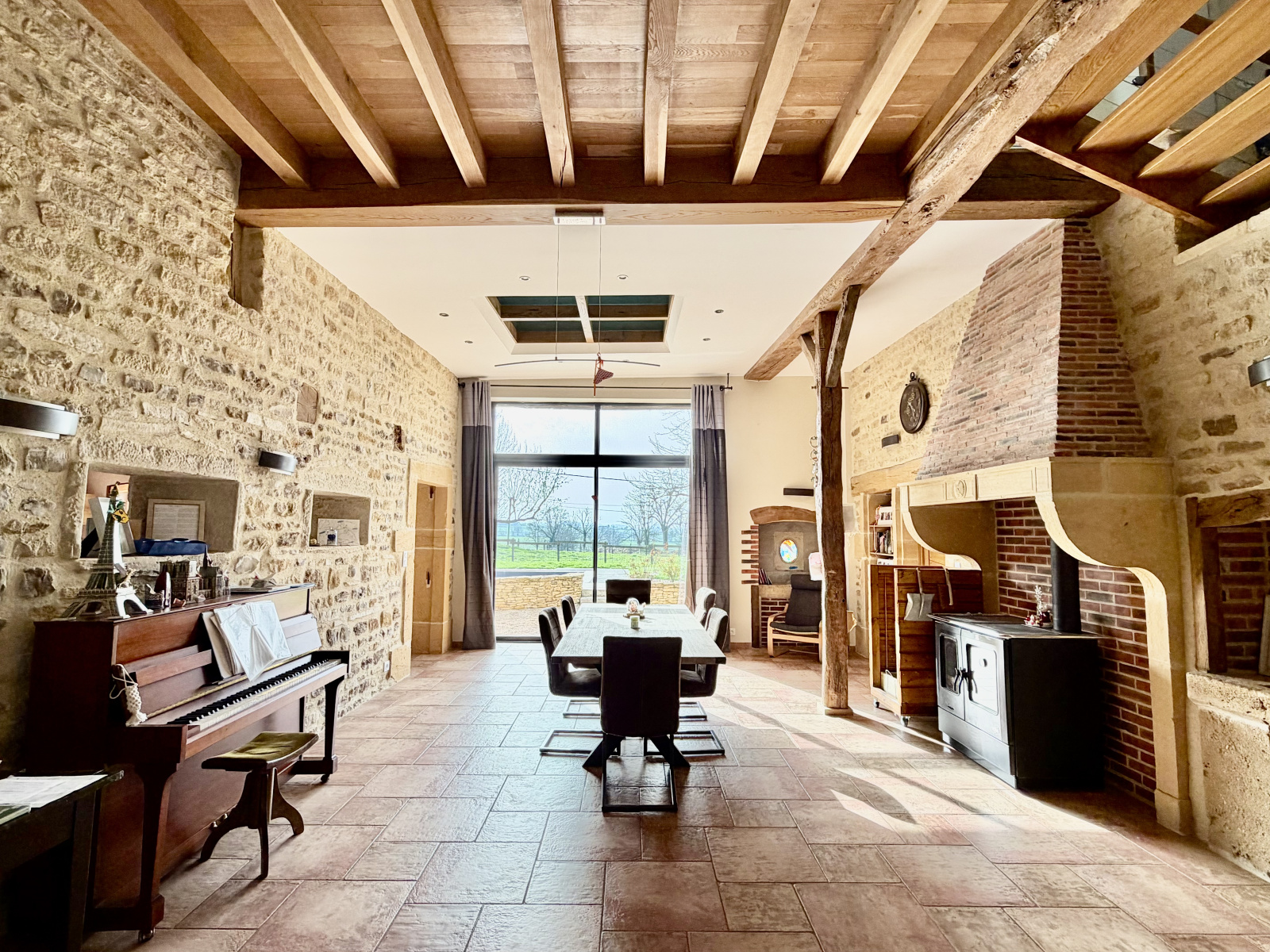 Entièrement rénovée avec goût entre 2012 et 2014, ayant conservé des éléments caractéristiques de l ancien (cheminée en pierre, plafond à la française, encadrement en pierre de bourgogne..)complétée par une extension réalisée en 2020 offrant une grande dépendance de 160 m2, elle bénéficie aujourd’hui de 220 m² habitables (275 M2 utiles)alliant charme de l’ancien et confort moderne.