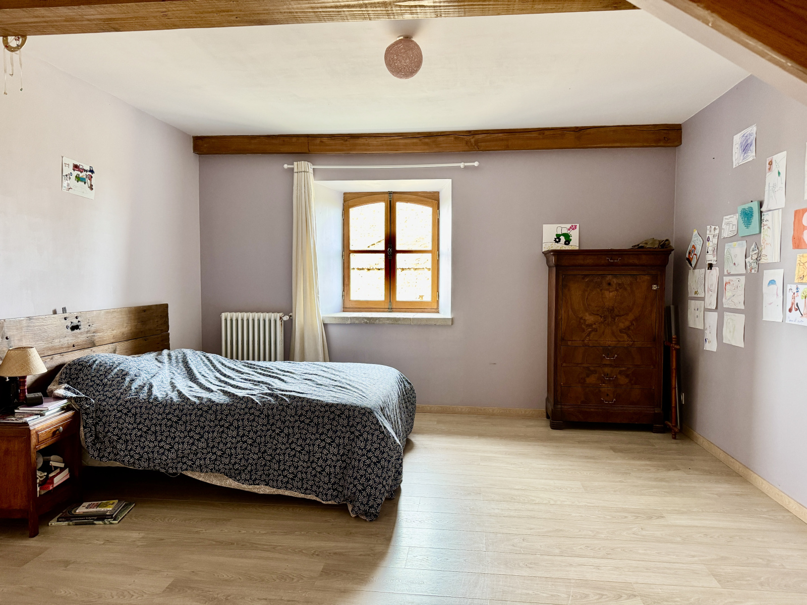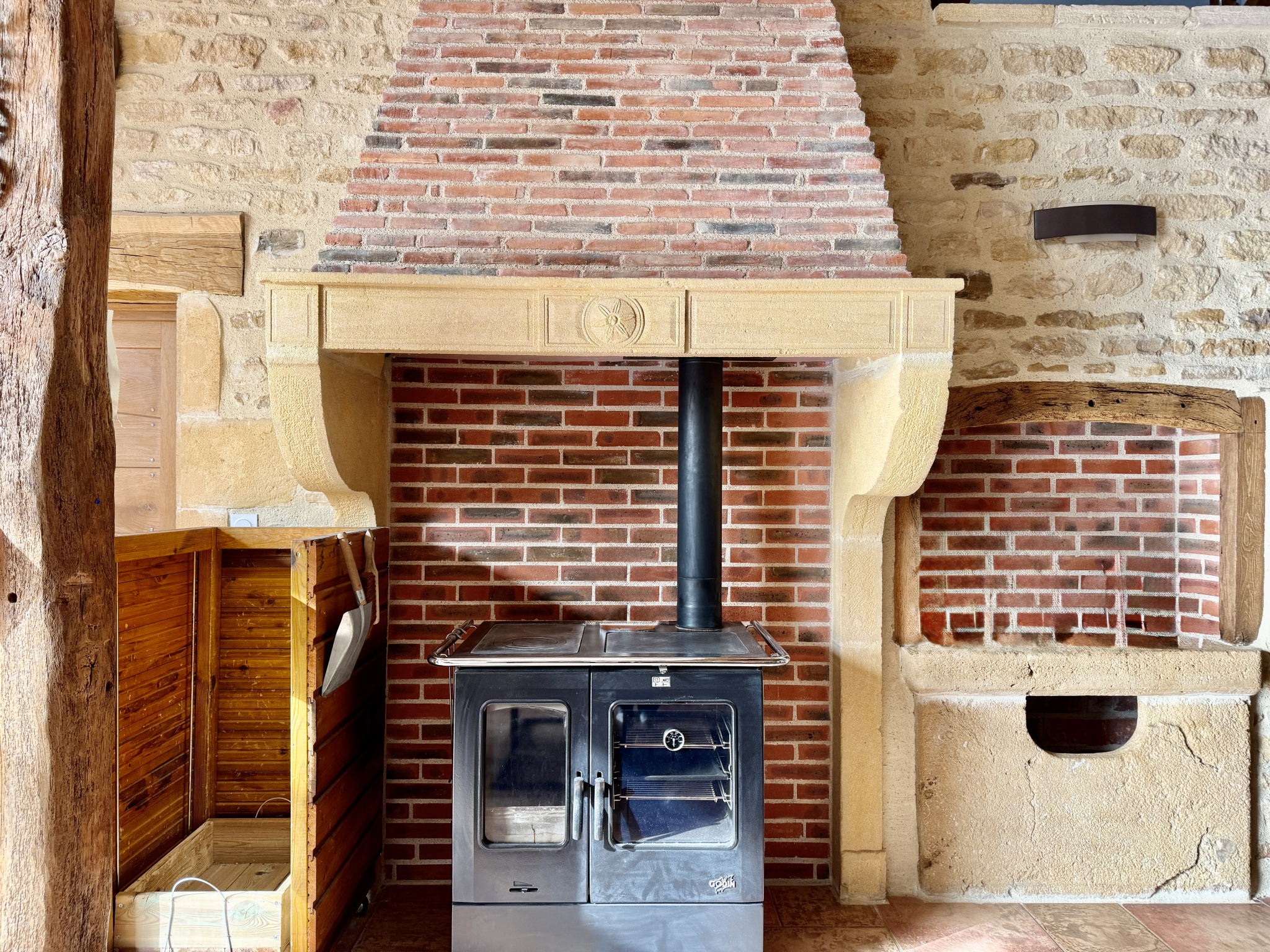 La maison s’organise autour d’une immense pièce de vie lumineuse, idéale pour recevoir, ainsi que cinq chambres dont deux au rez-de-chaussée, une cuisine entièrement équipée, une buanderie une salle de bains et une salle d’eau. Les huisseries sont en double vitrage, et le confort thermique est assuré par un chauffage au sol alimenté par une chaudière à bois. L’assainissement est assuré par une micro-station. Les toitures ont été refaites entre 2008 et 2009. Le diagnostic énergétique classe la maison en DPE C.
