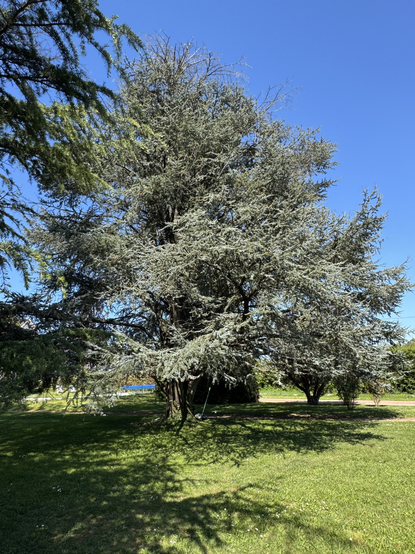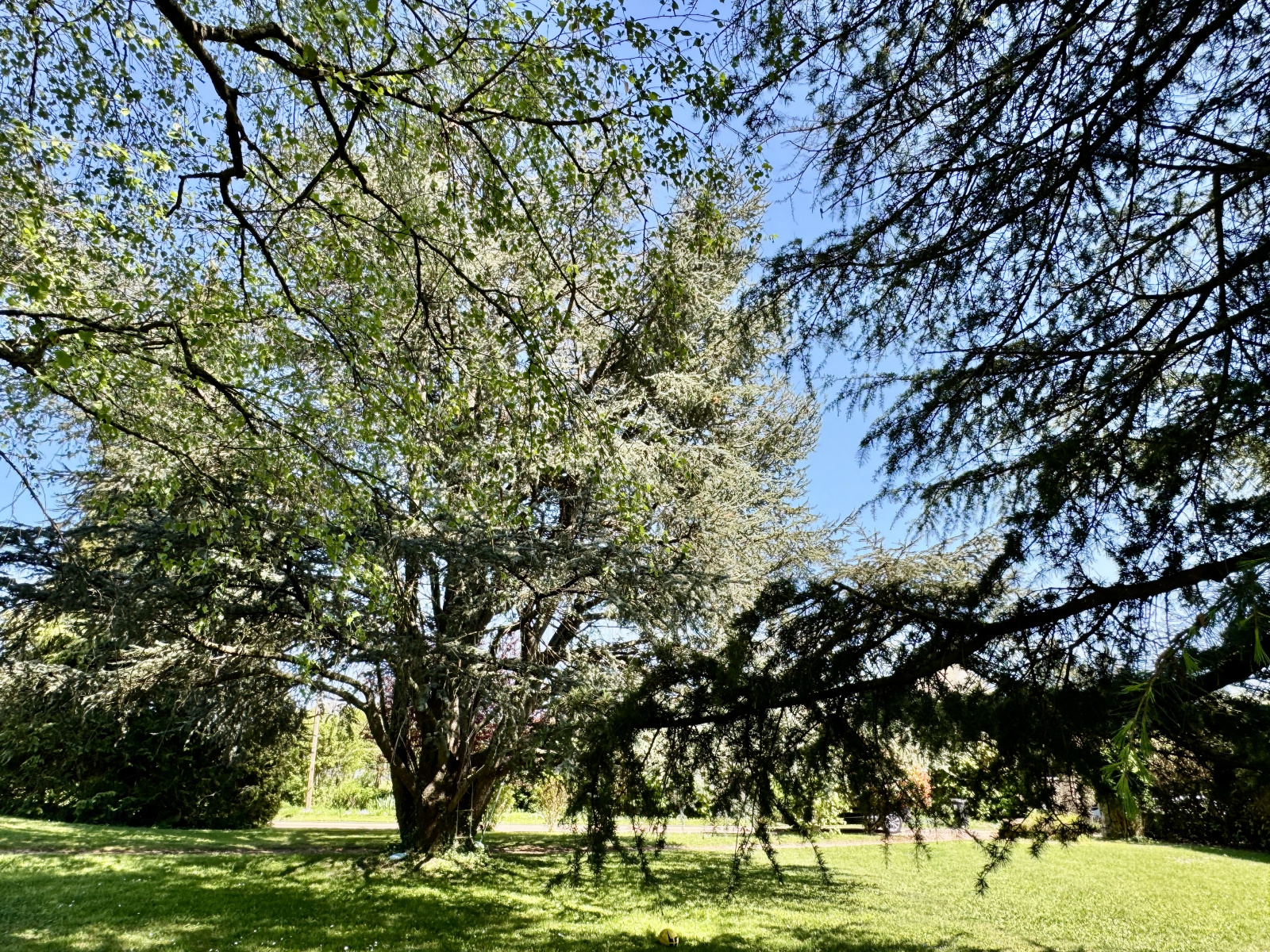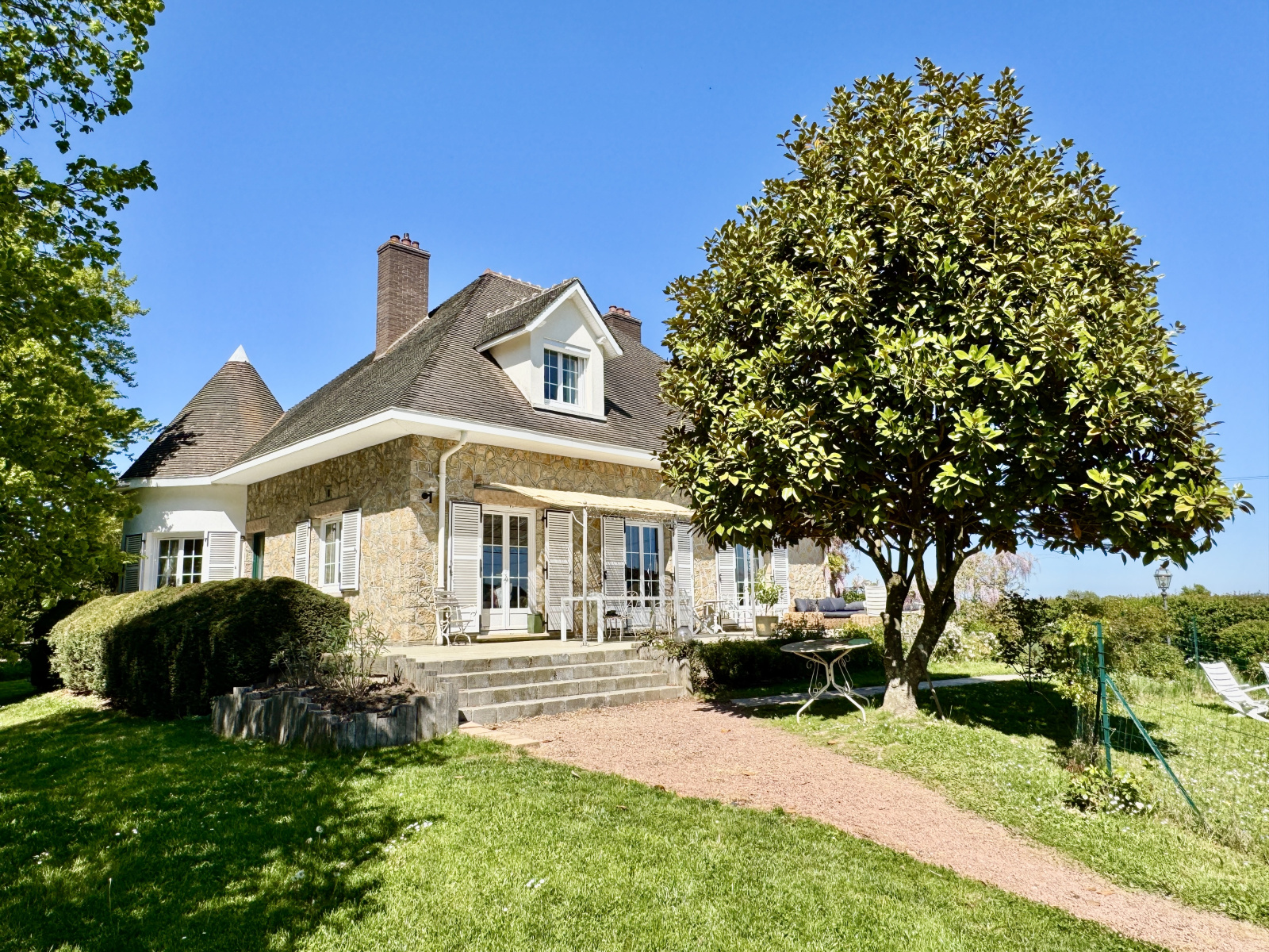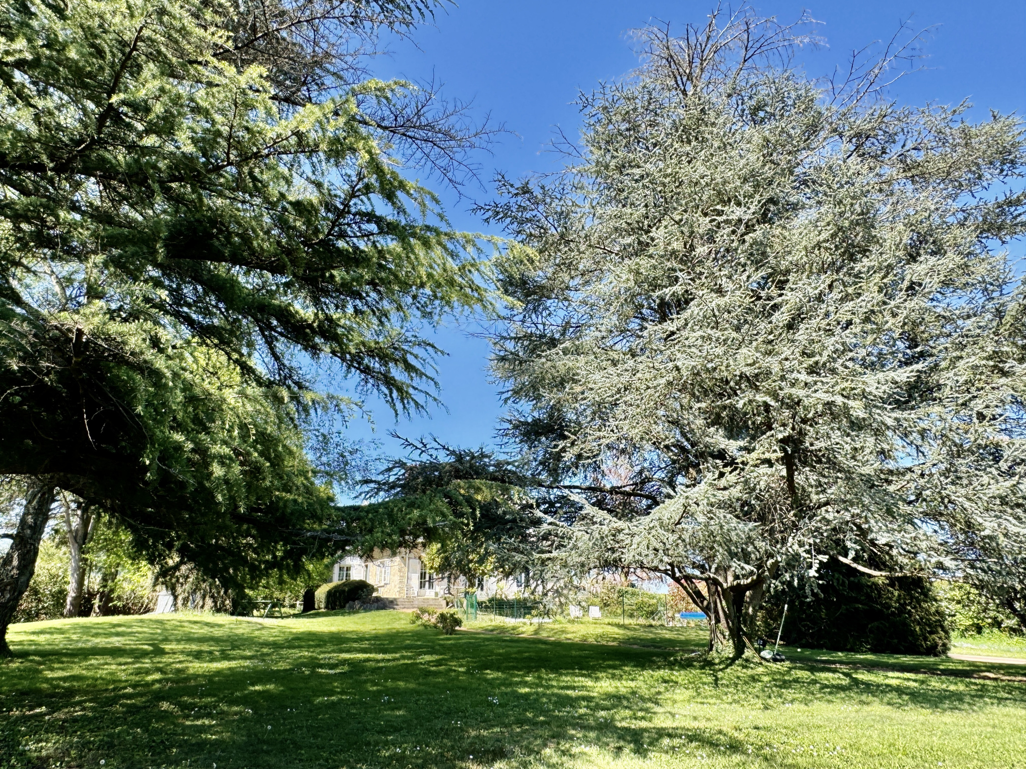 La propriété s’ouvre sur un jardin structuré et végétalisé, composé d’essences de qualité (cèdres, tilleul, magnolia, rosiers).