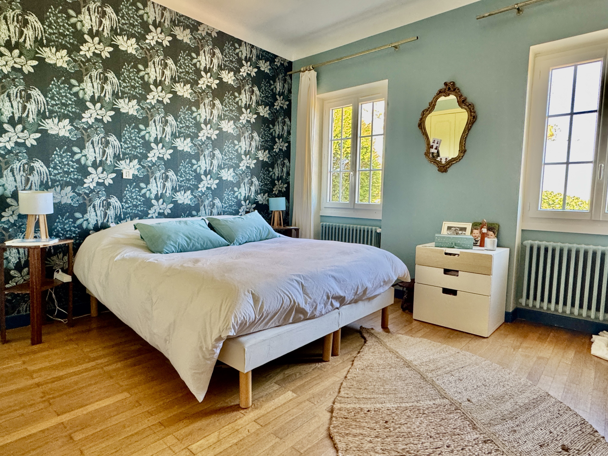 - Trois chambres à l’étage, chacune avec dressing, accompagnées d’une salle d’eau