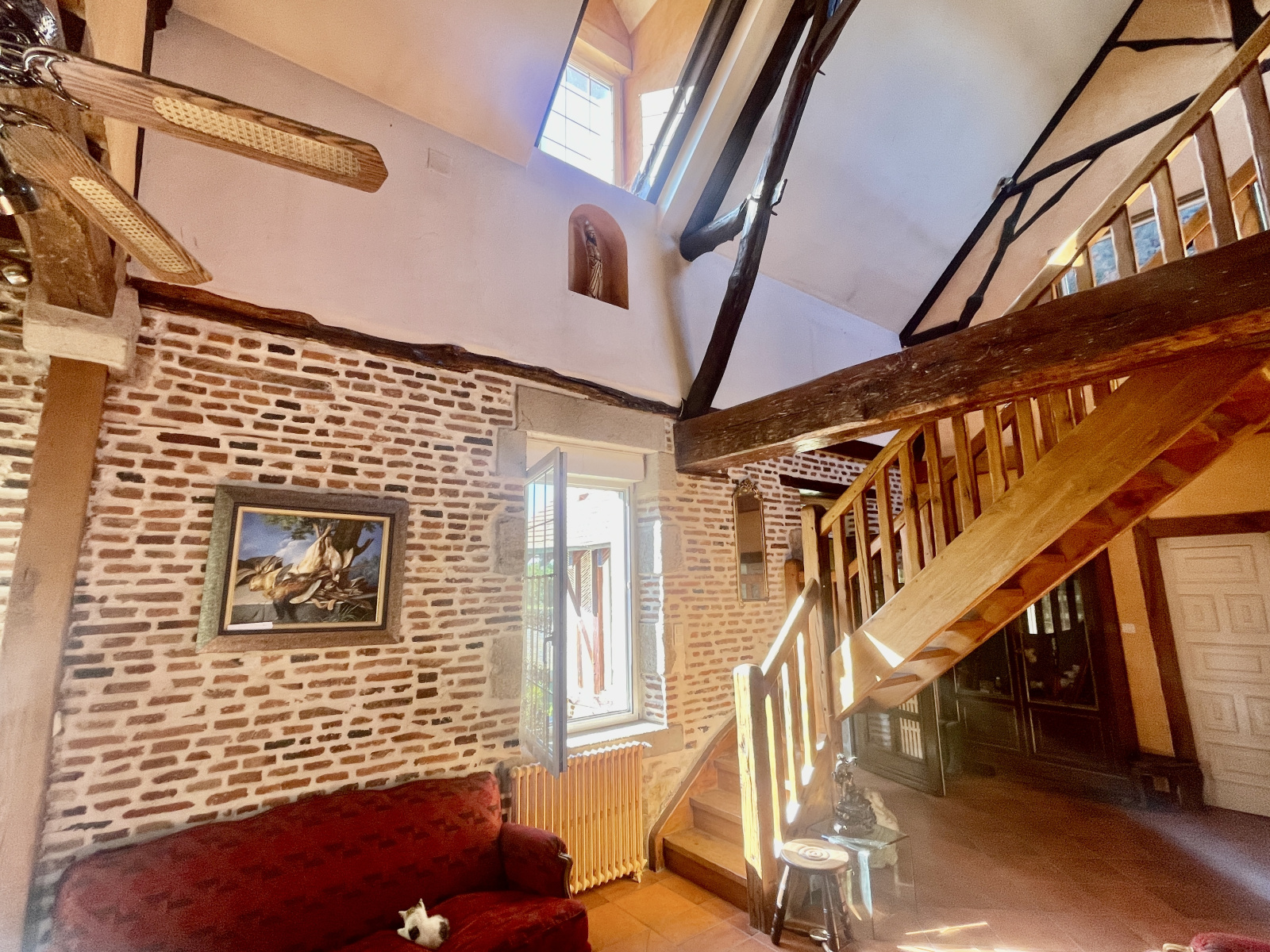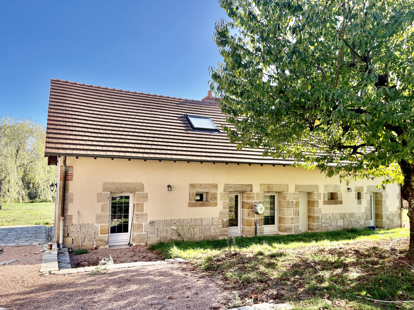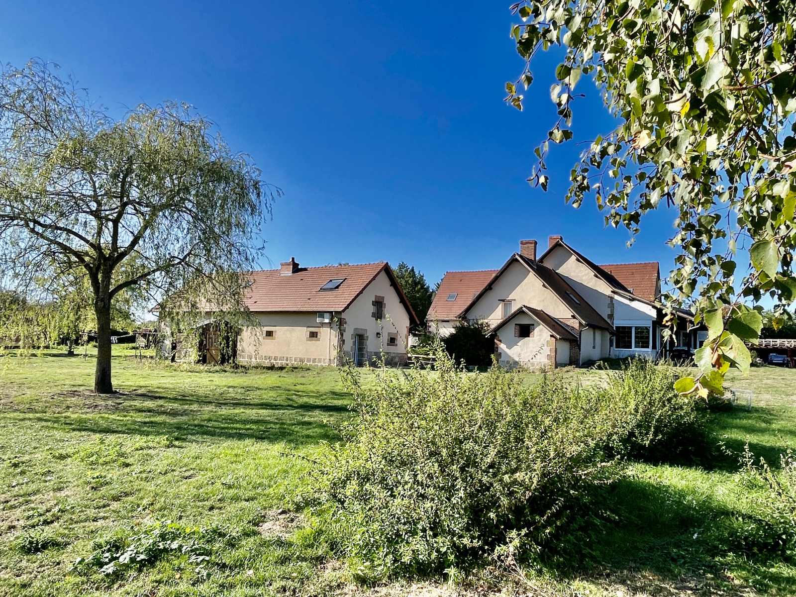 Moulins (03000)Proche de Moulins, au coeur du Bourbonnais, au calme, propriété de charme rénovée ,ancien corps de ferme en pierredu XVIII , actuellement à usage d'habitation et commercial. La propriété s'étend sur près de 1,8 haavec des espaces d'agréments (étang, terrasse, jardin et parkings). Les trois bâtiments ont été entièrement restaurés dans les 20 dernières années. La maison d'habitation d'une superficie de 250m2; est composée au rez-de-chaussée: d’une entrée, d’un grand séjour-salle à manger avec cheminée et espace bar, d’une cuisineavec coin repas, d’unegrande chambre avec salle de bains, d’une arrière-cuisine avec four à pain, d’ une chaufferie (chaudière au fuel), buanderie et cave. Au premier étage, une mezzanine ouvrant sur 2 grandes chambres, une salle d'eau et toilettes.