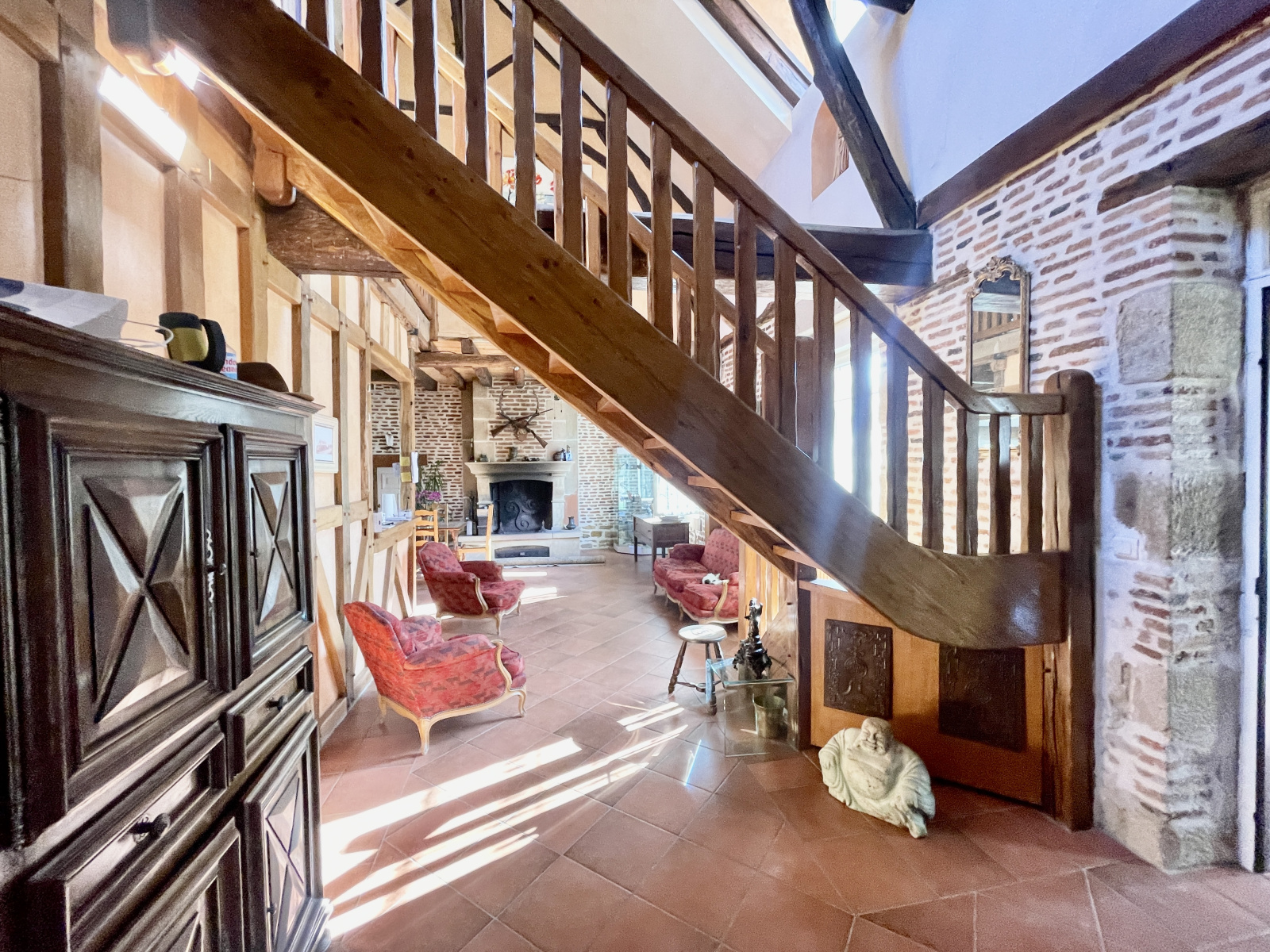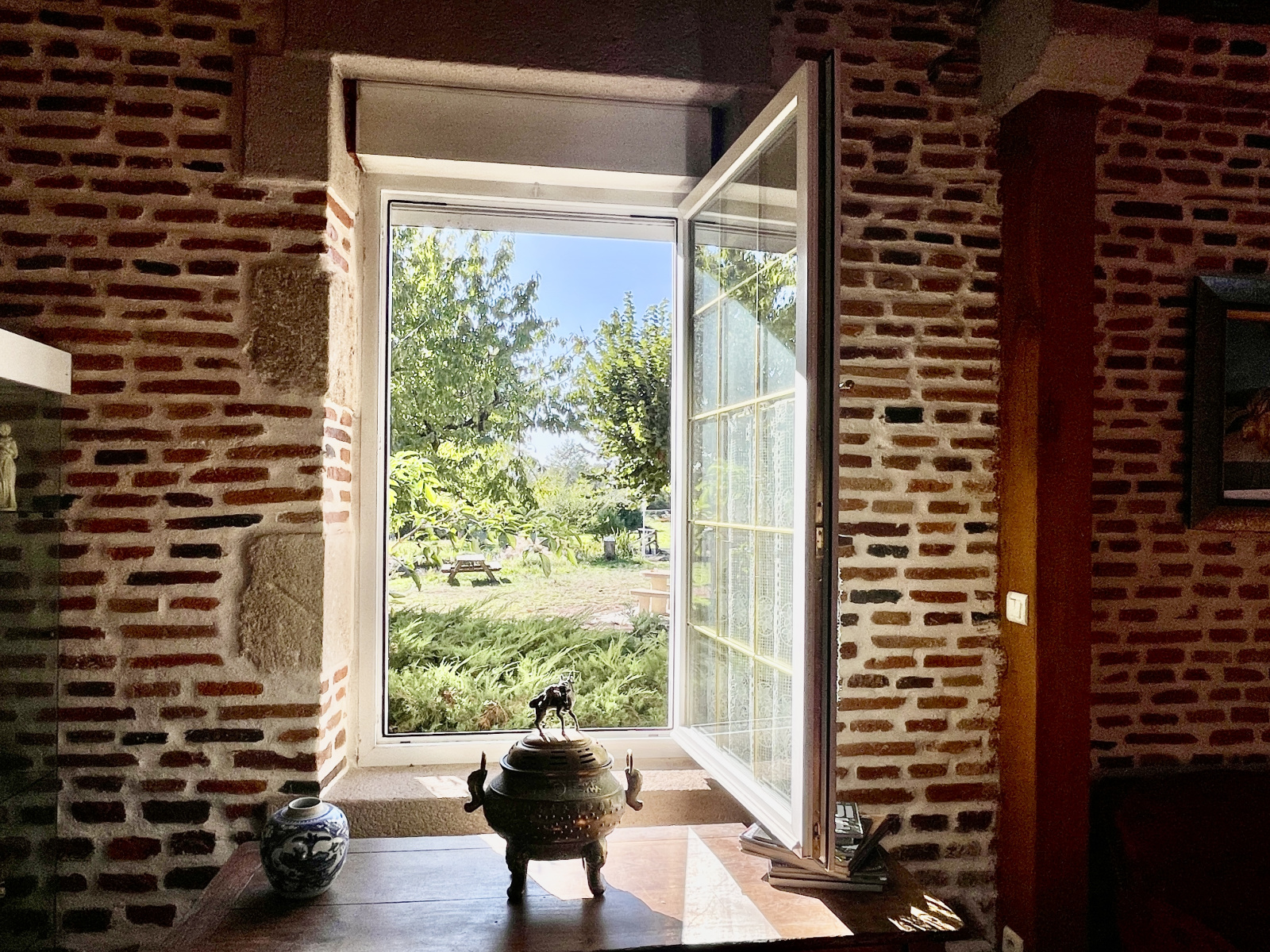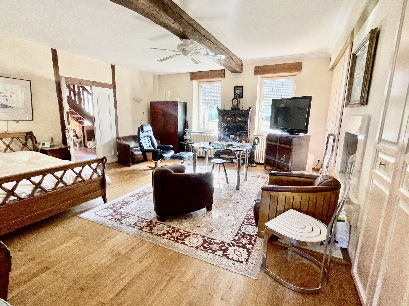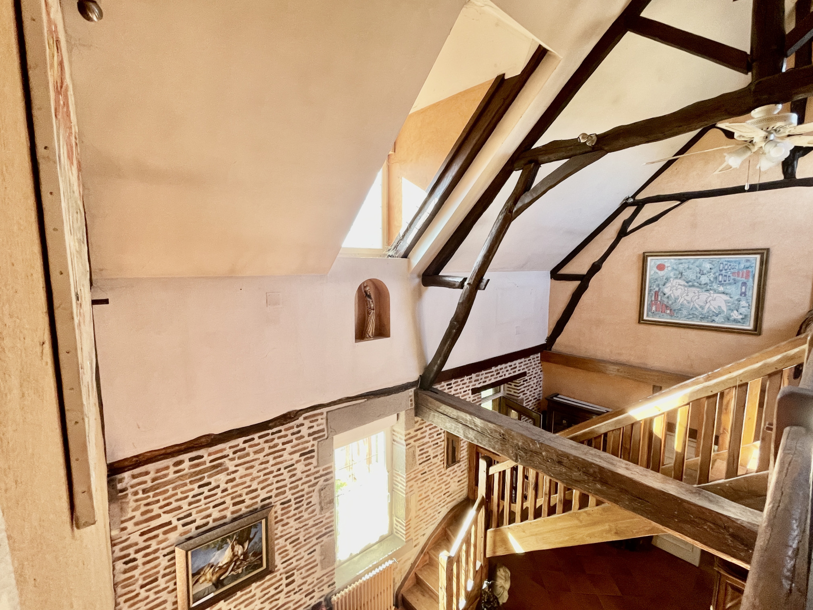 Moulins (03000)Proche de Moulins, au coeur du Bourbonnais, au calme, propriété de charme rénovée ,ancien corps de ferme en pierredu XVIII , actuellement à usage d'habitation et commercial. La propriété s'étend sur près de 1,8 haavec des espaces d'agréments (étang, terrasse, jardin et parkings). Les trois bâtiments ont été entièrement restaurés dans les 20 dernières années. La maison d'habitation d'une superficie de 250m2; est composée au rez-de-chaussée: d’une entrée, d’un grand séjour-salle à manger avec cheminée et espace bar, d’une cuisineavec coin repas, d’unegrande chambre avec salle de bains, d’une arrière-cuisine avec four à pain, d’ une chaufferie (chaudière au fuel), buanderie et cave. Au premier étage, une mezzanine ouvrant sur 2 grandes chambres, une salle d'eau et toilettes.