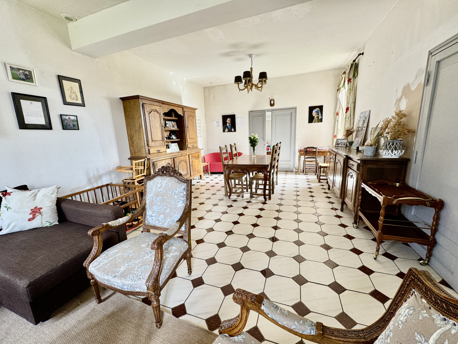 •Au premier étage : trois chambres dont deux suites avec salle d’eau et toilettes attenants, ainsi qu’un accès direct à des combles à aménager.