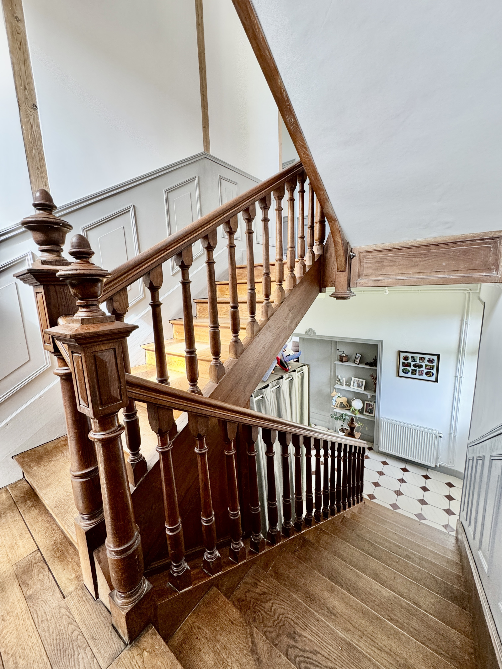 Rénovée au cours de ces dernières années mais ayant conservé tous les éléments caractéristiques de l’ancien( hauteur sous plafond, escalier en bois majestueux, parquet, poutres apparentes, cheminée, carreaux de ciment…); la maison de maître de 170 m2 très lumineuse car excavée est agencée comme suit: